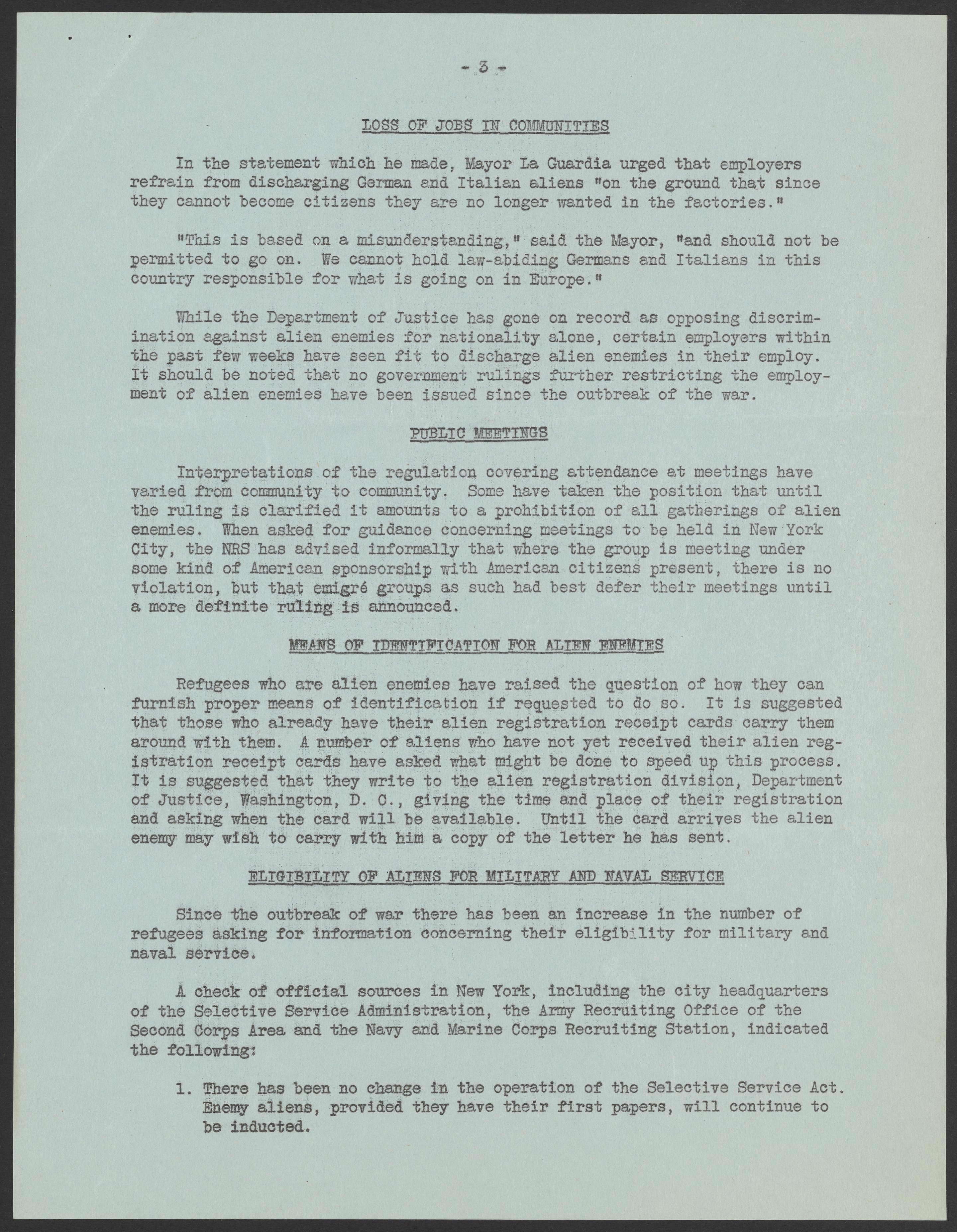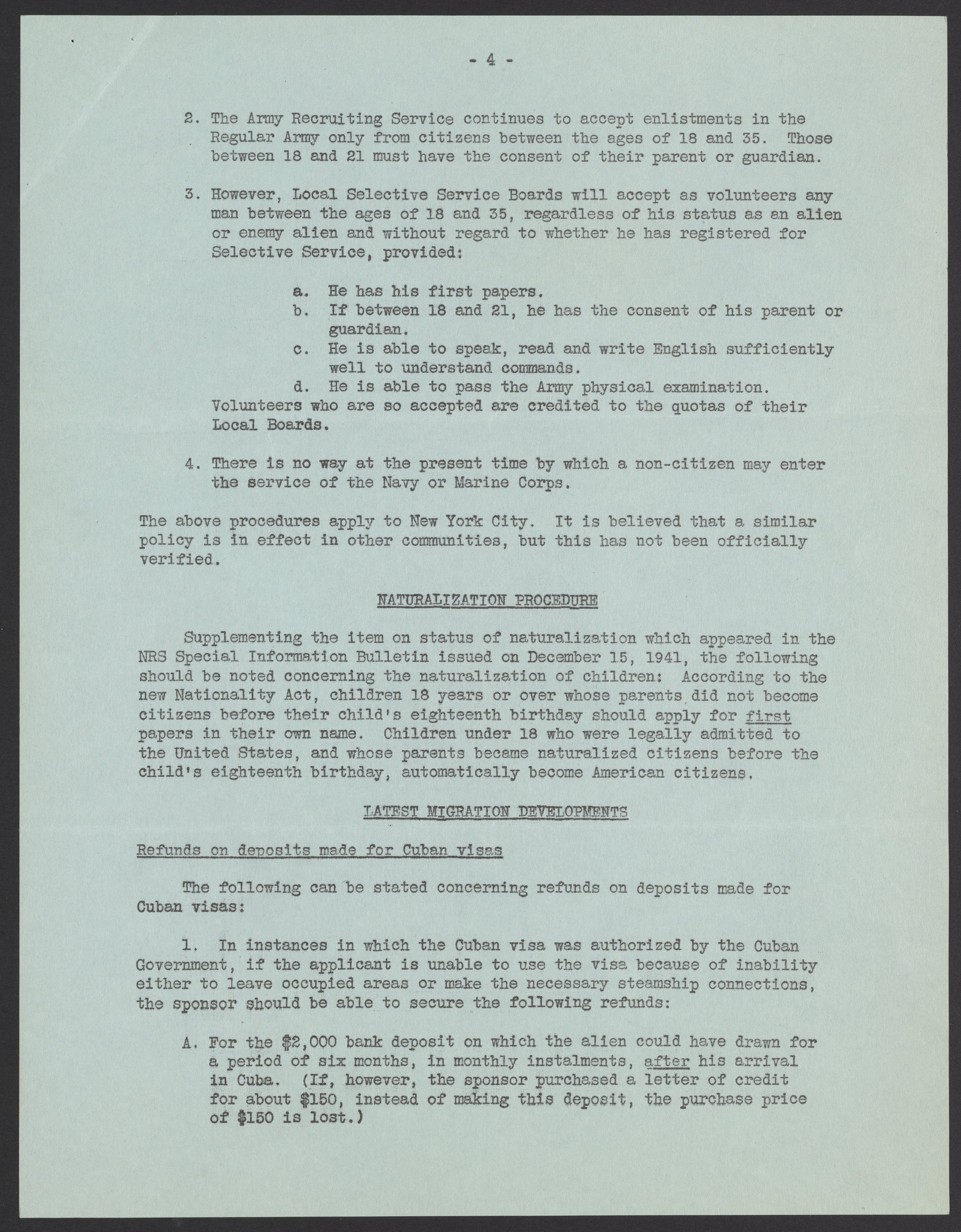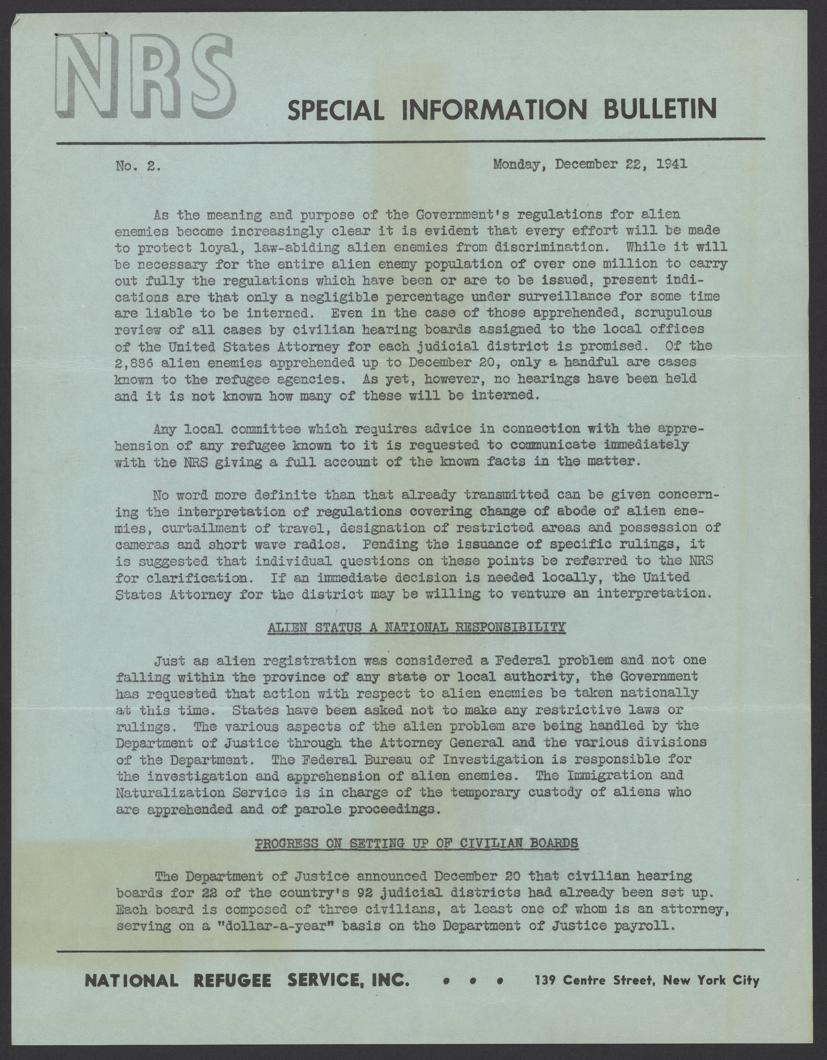 Special Information Bulletin from the National Refugee Service, Inc.