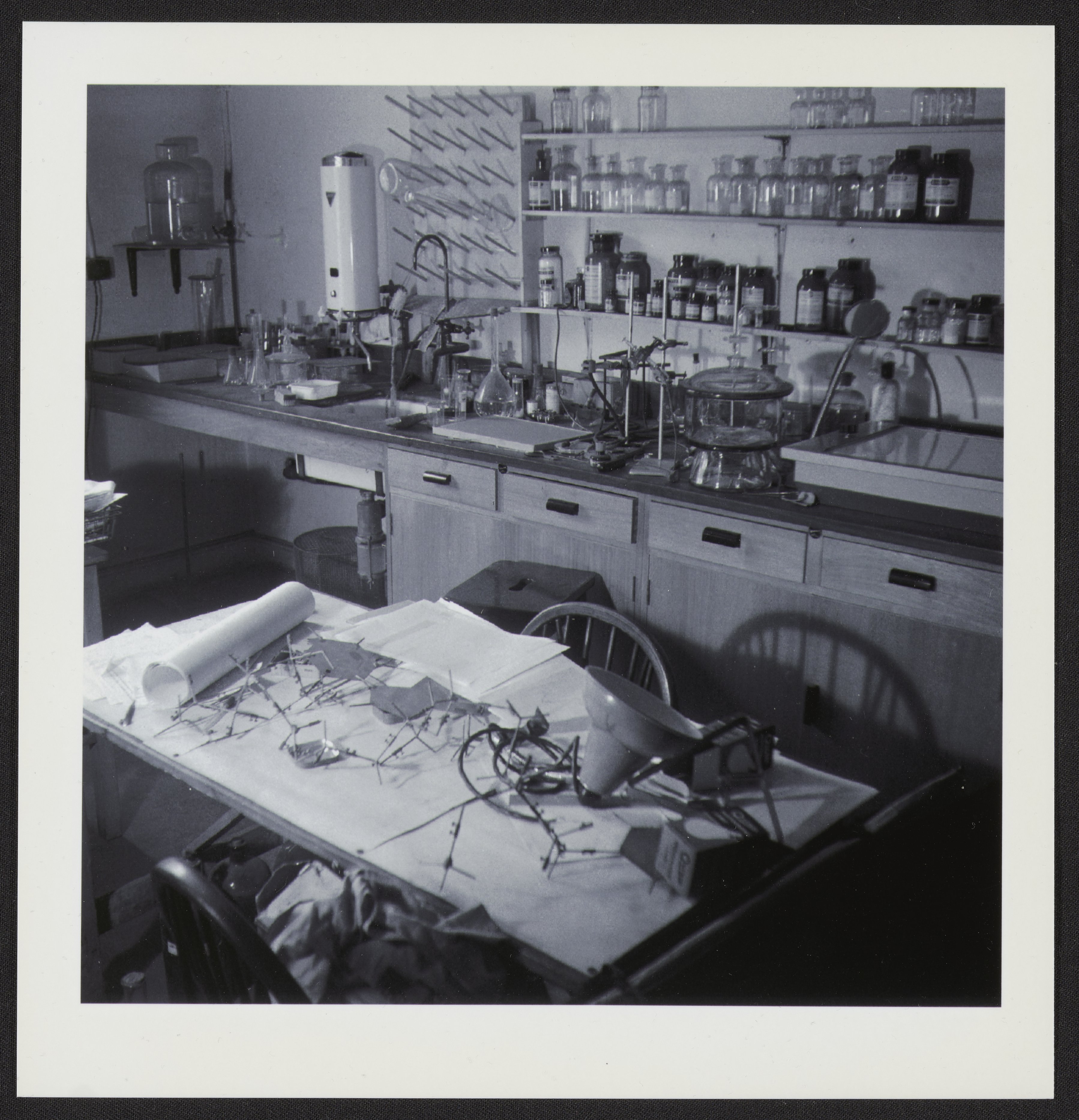 Black and white photograph of Rosalind Franklin's (1920–1958) laboratory at Birkbeck College, taken shortly after her death.
