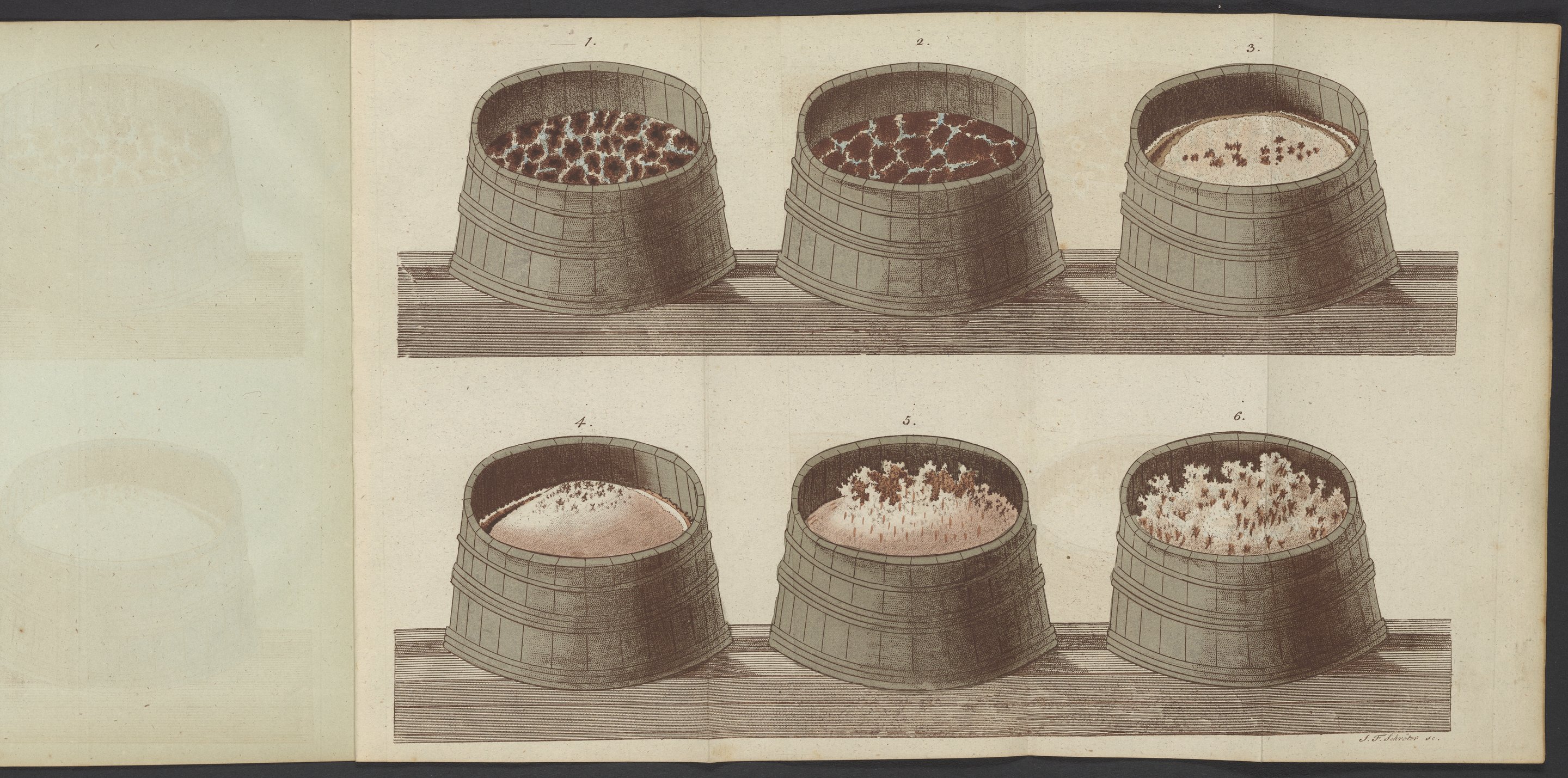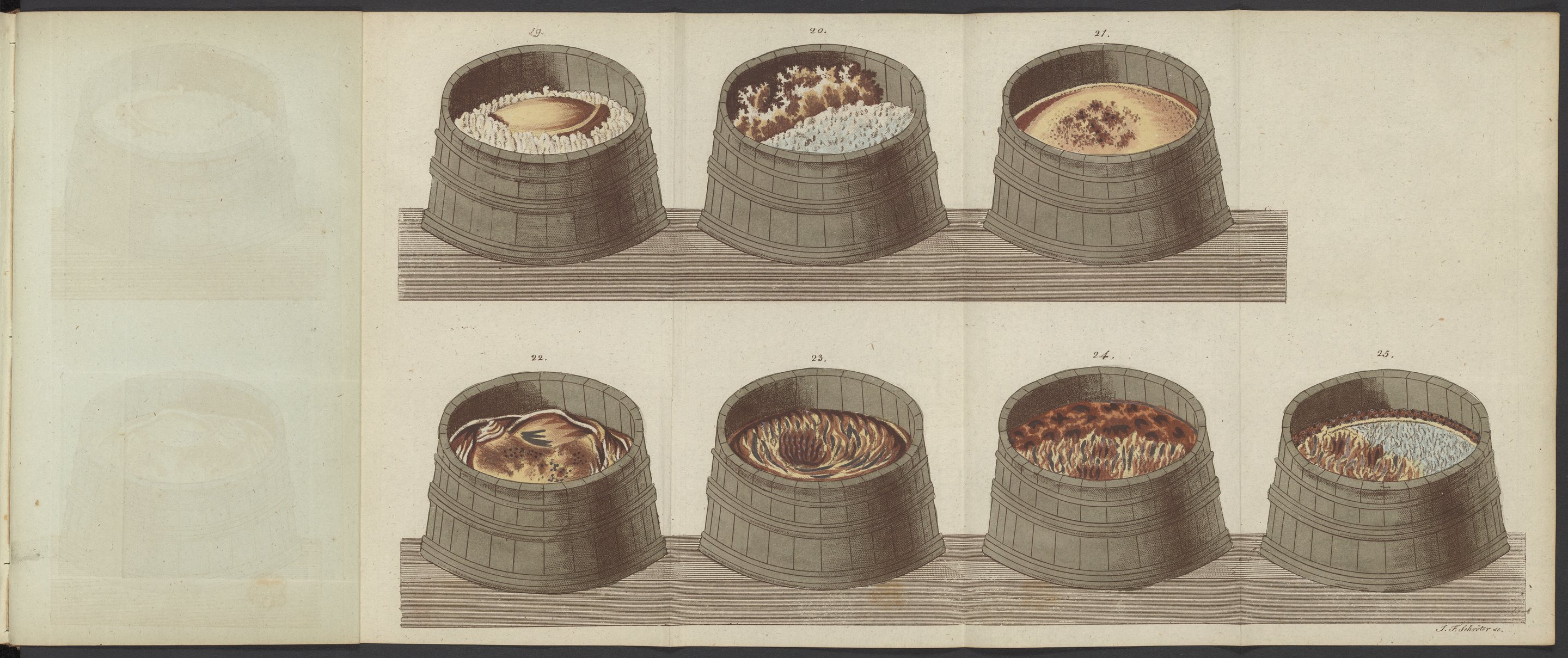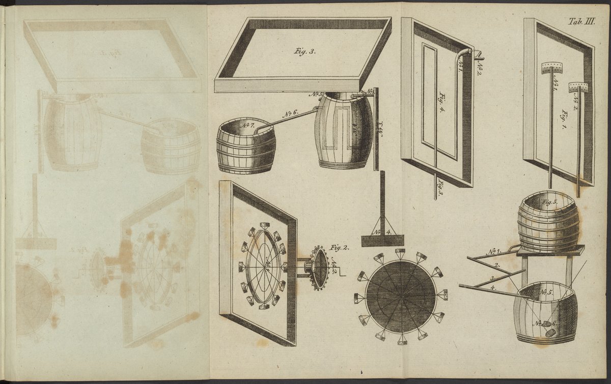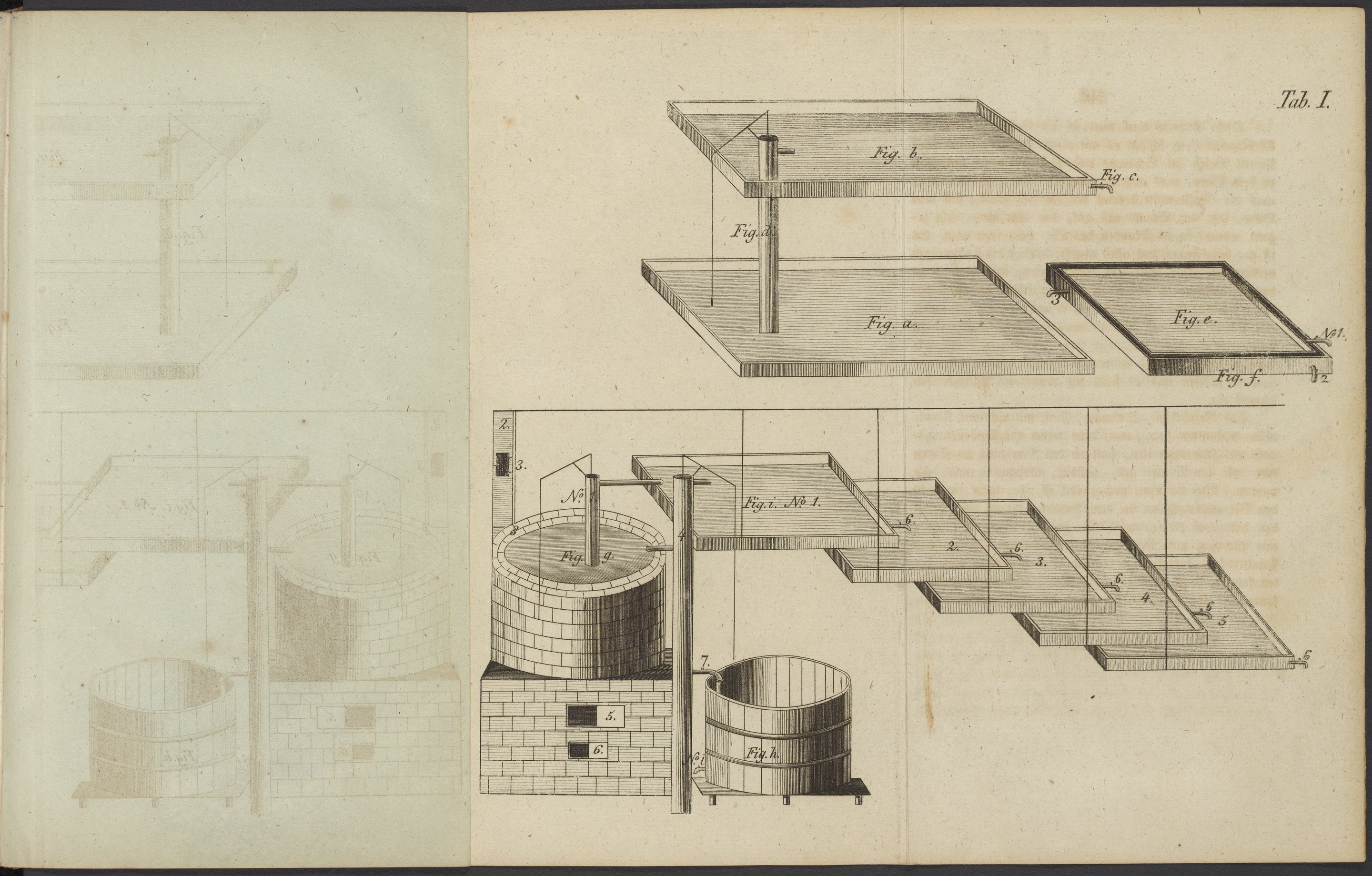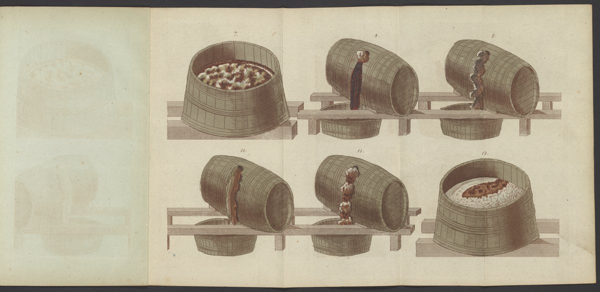Small JPG1200 x 1848px — 532 KBLarge JPG2880 x 4436px — 2.5 MBFull-sized JPG3220 x 4960px — 3.1 MBOriginal fileTIFF — 3220 x 4960px — 45.7 MBA detailed guide for brewers, distillers, vinegar makers, and brewing enthusiasts. The volume is divided into three parts, malting, fermentation processes, and distilling. Following the text, the work contains 13 foldouts, each with copperplate illustrations. These decorative panels depict vats at the various stages of the brewing process, brewing equipment, and hops. The digitization is limited to the volume’s plates.