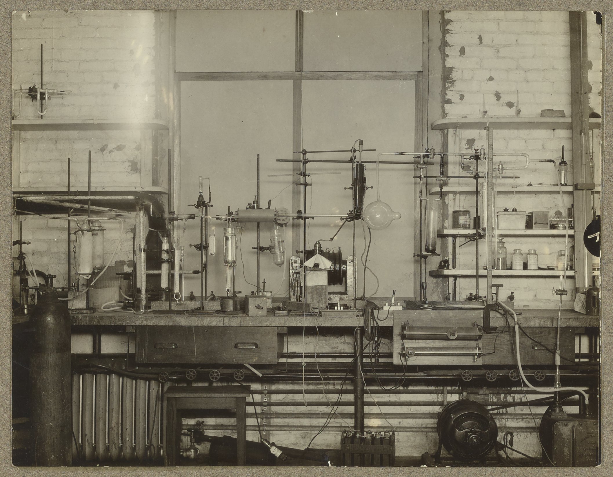 “Apparatus Used for Reaction of Active Nitrogen,” circa 1928. Travis P. Hignett Collection of Fixed Nitrogen Research Laboratory Photographs, Box 1. Science History Institute. Philadelphia. https://digital.sciencehistory.org/works/j098zb18x.
