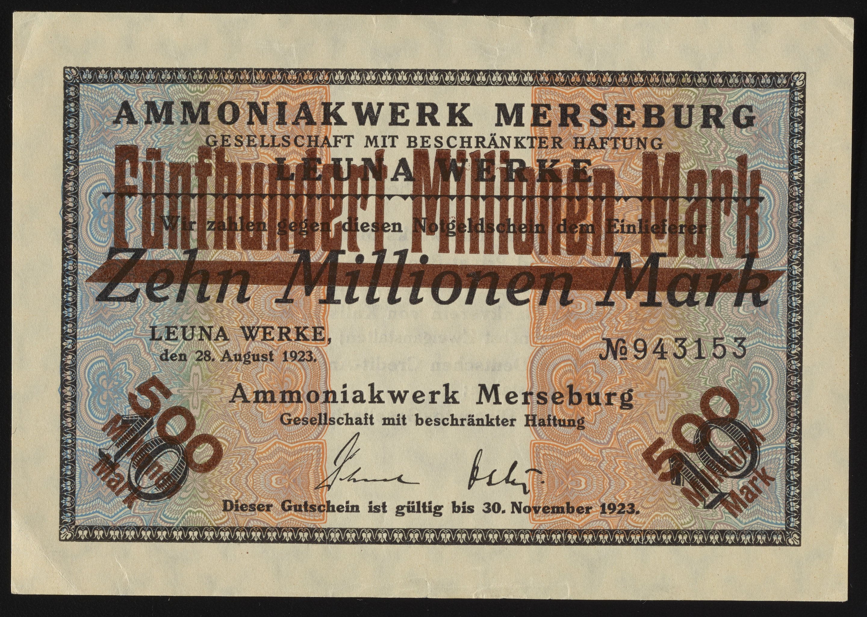 Badische Anilin- & Soda-Fabrik Zehn Millionen/Fünfhundert Millionen Mark Notgeldschein
