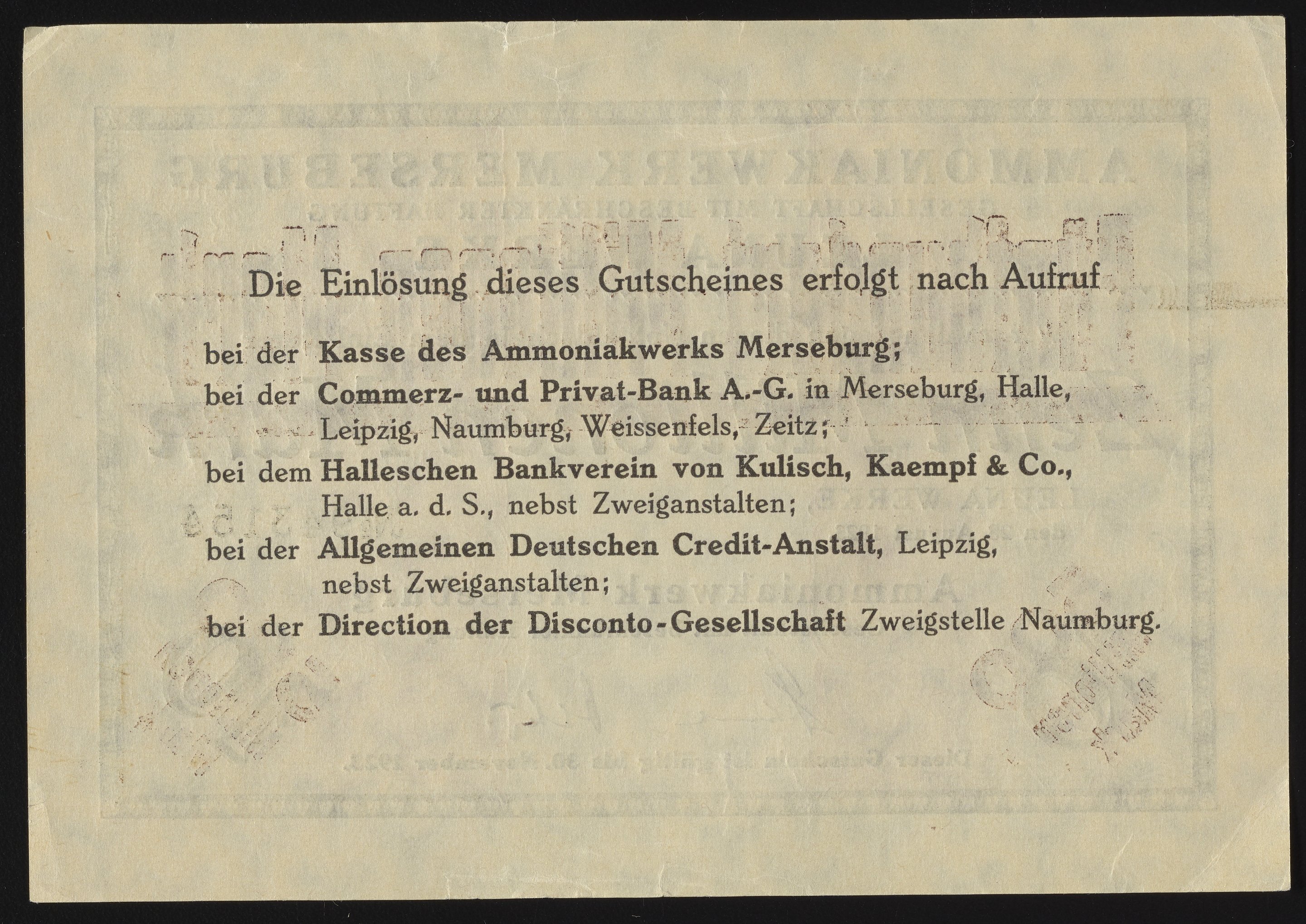 • Badische Anilin- & Soda-Fabrik ten million/five hundred million Mark emergency money bill