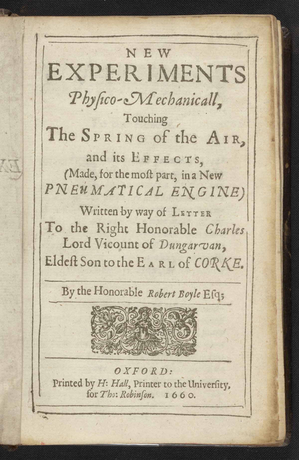 New Experiments Physico-Mechanicall, Touching the Spring of the Air, and its Effects (Made, for the Most Part, in a New Pneumatical Engine)