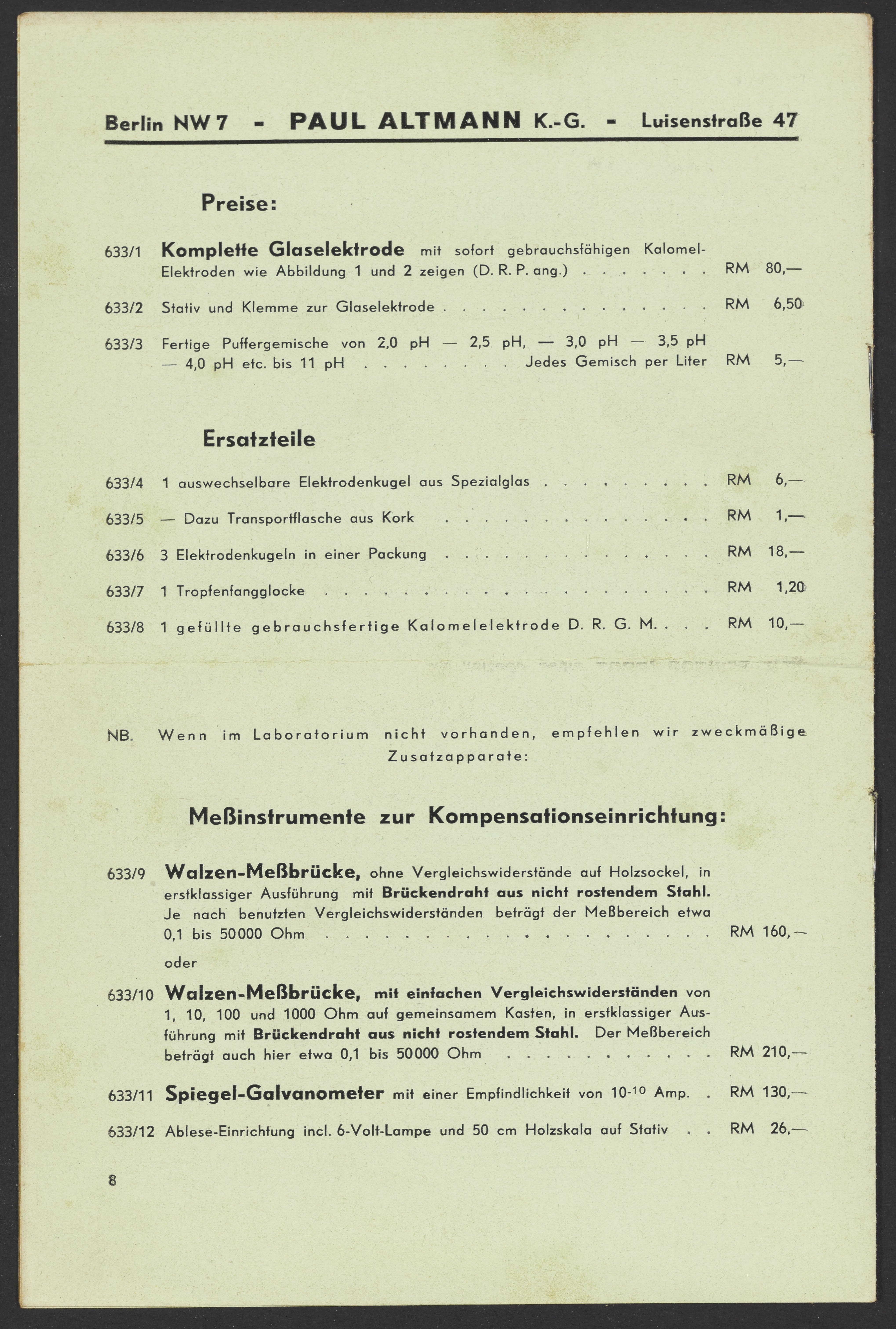 • Reliable and accurate pH determination with the new glass electrode according to Dr. Schwabe DRP ang. in a simple compensation circuit