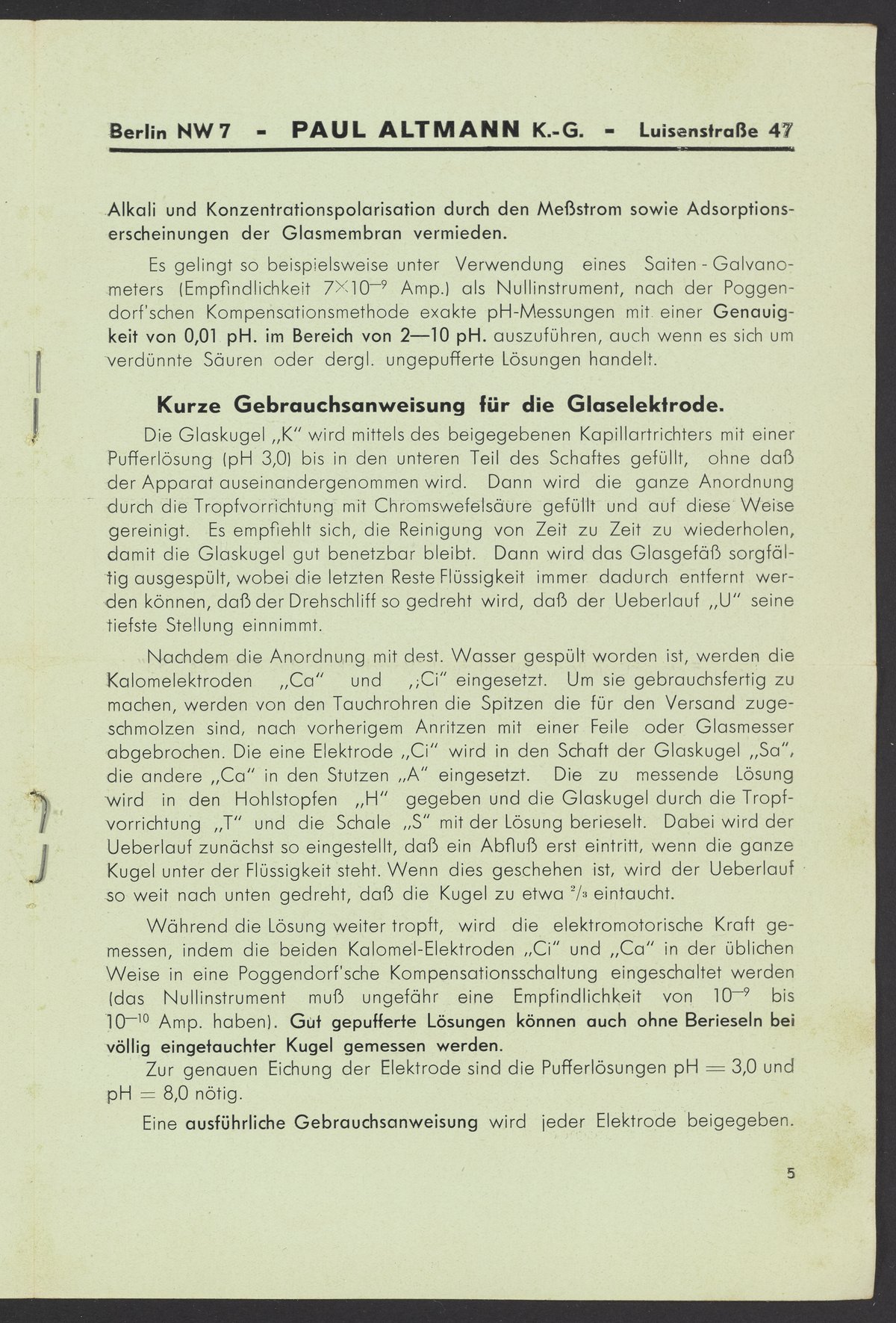 pH-Bestimmung zuverlässig und genau mit der neuen Glaselektrode nach Dr. Schwabe DRP ang. in einfacher Kompensationsschaltung
