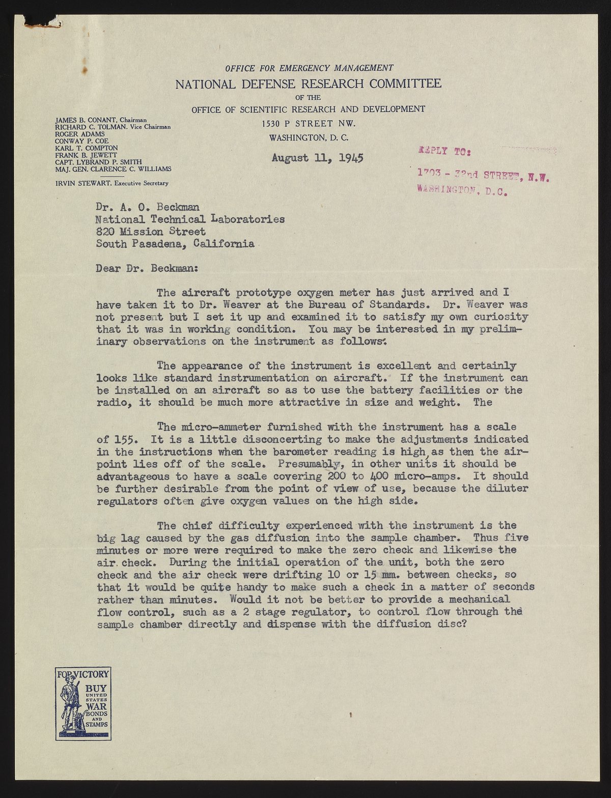Small JPG1200 x 1568px — 346 KBFull-sized JPG2612 x 3412px — 1.4 MBOriginal fileTIFF — 2612 x 3412px — 25.6 MBIn this letter, Prentiss shares his initial impressions of a prototype aircraft oxygen meter.