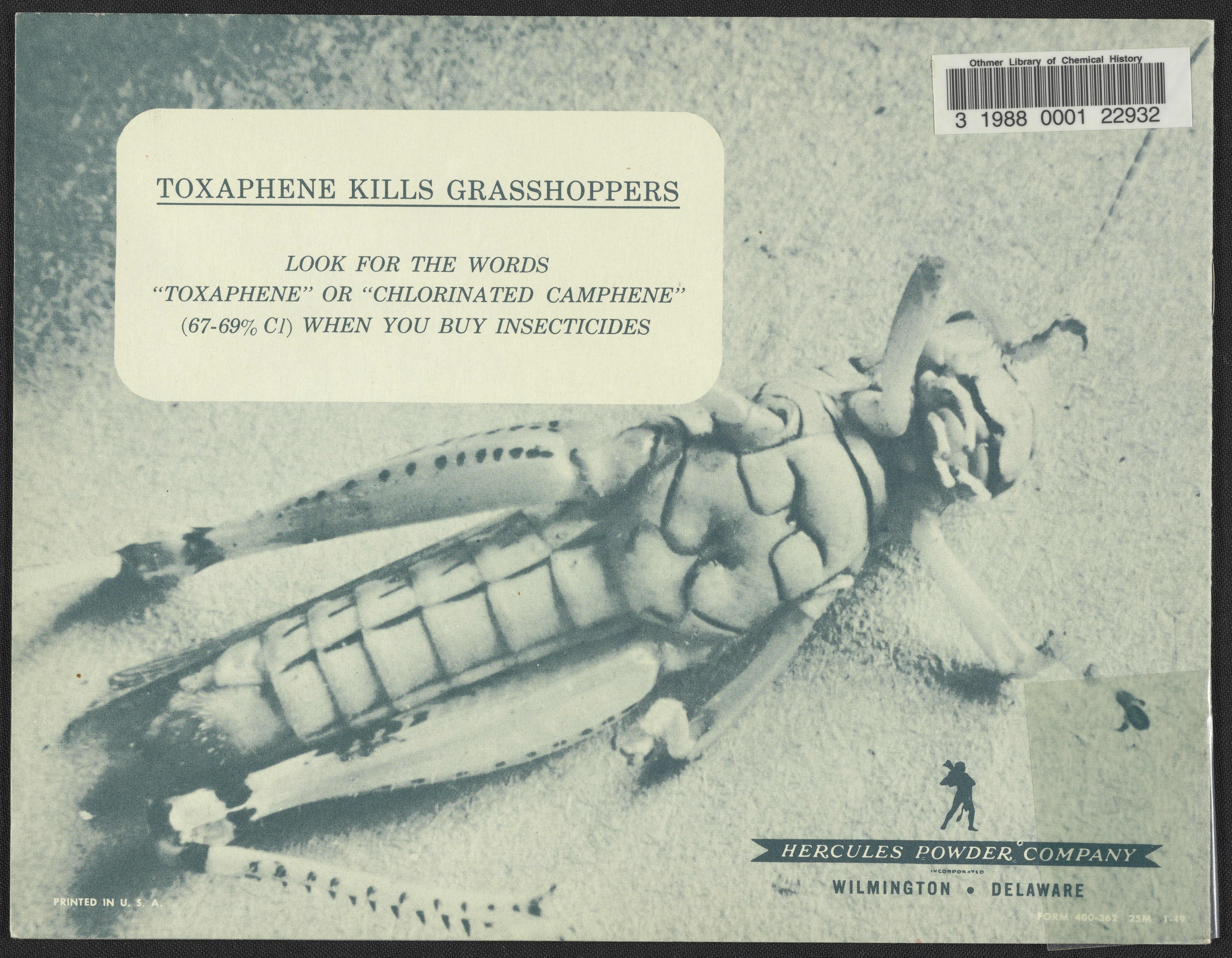 Hercules Powder Company. “Toxaphene Kills Grasshoppers: The Camera Shows It's as Simple as A.B.C.” Wilmington, Delaware, 1949. https://digital.sciencehistory.org/works/j6731502v.