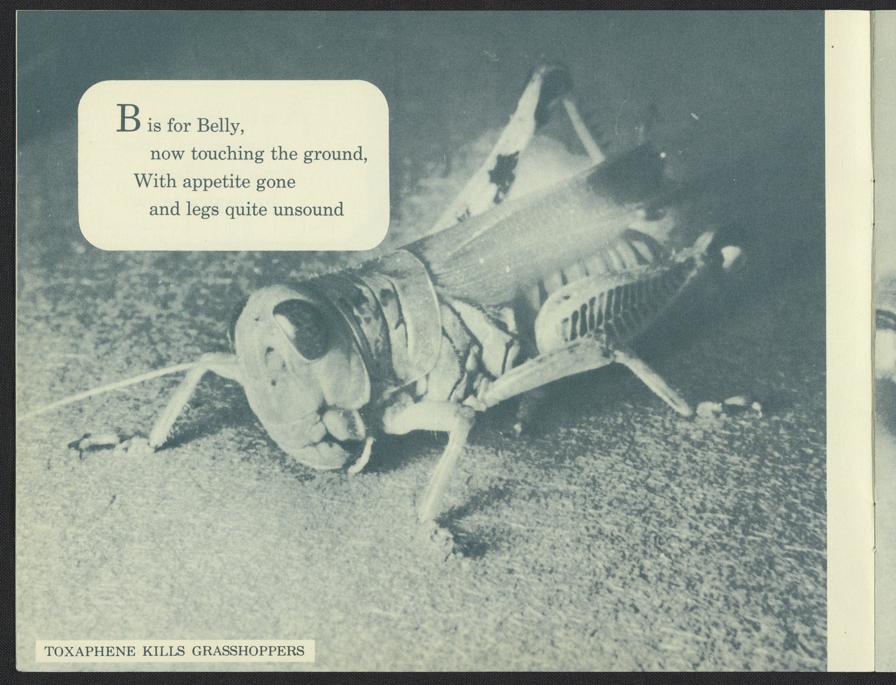 Small JPG1200 x 928px — 209 KBLarge JPG2880 x 2226px — 1.9 MBFull-sized JPG5914 x 4571px — 7.6 MBOriginal fileTIFF — 5914 x 4571px — 77.4 MBPamphlet in the form of a children's alphabet book depicts the stages of death inflicted upon a grasshopper with the use of Toxaphene pesticides produced by Hercules Powder Company.
