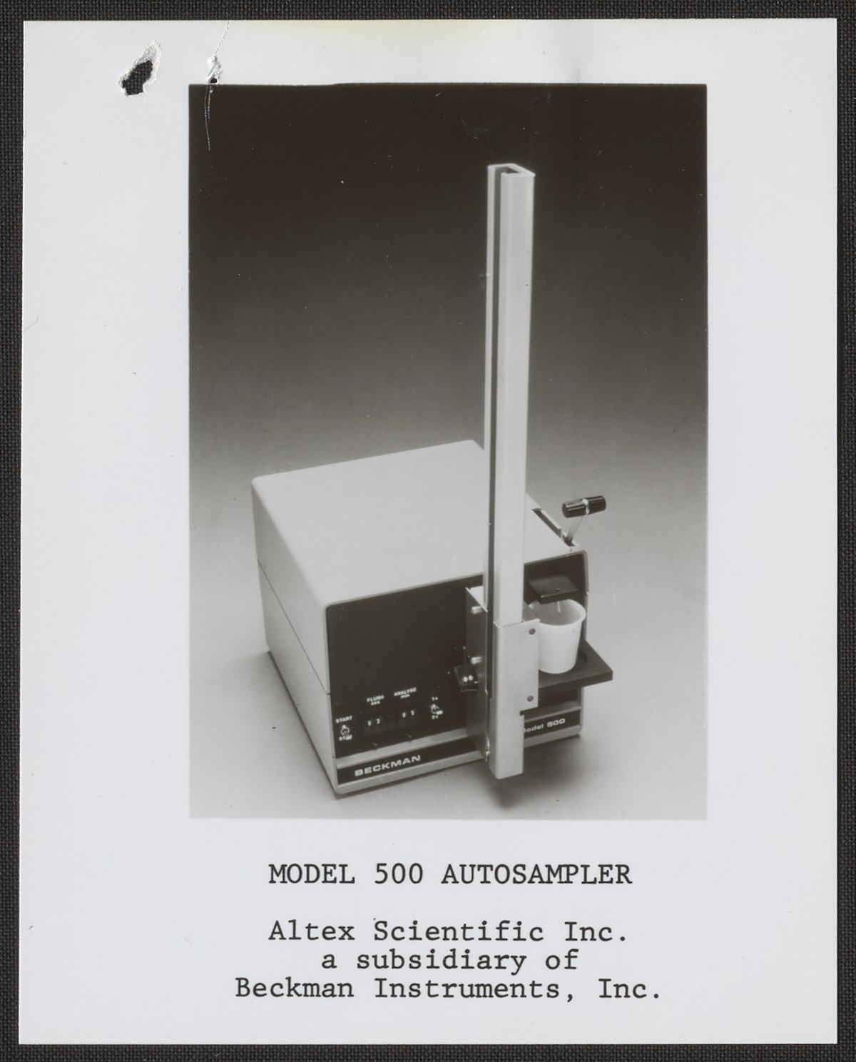 “Beckman Model 500 Autosampler,” 1978–1990. Beckman Historical Collection, Box 84. Science History Institute. Philadelphia. https://digital.sciencehistory.org/works/jd472w730.