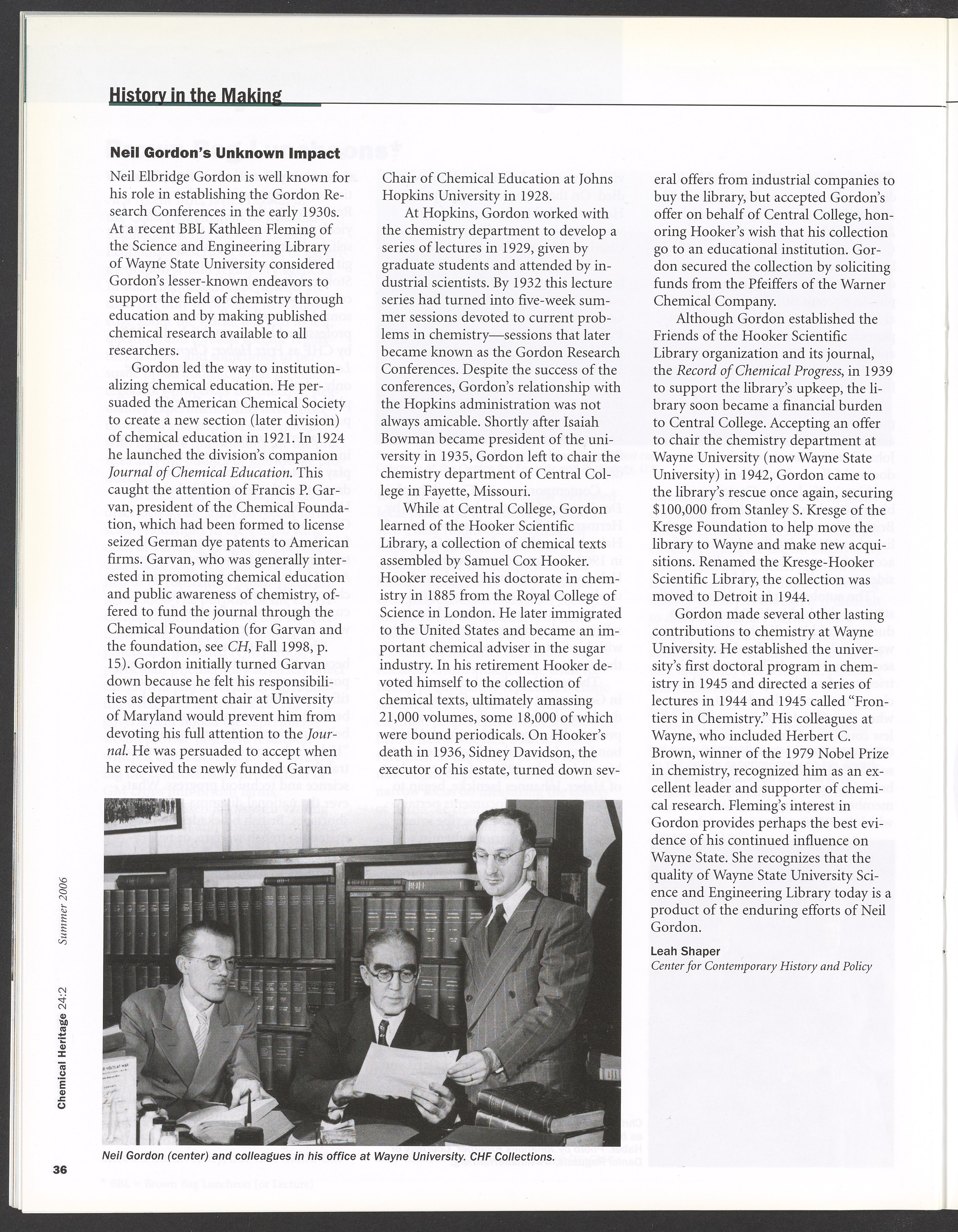 Chemical Heritage, Volume 24 Number 2