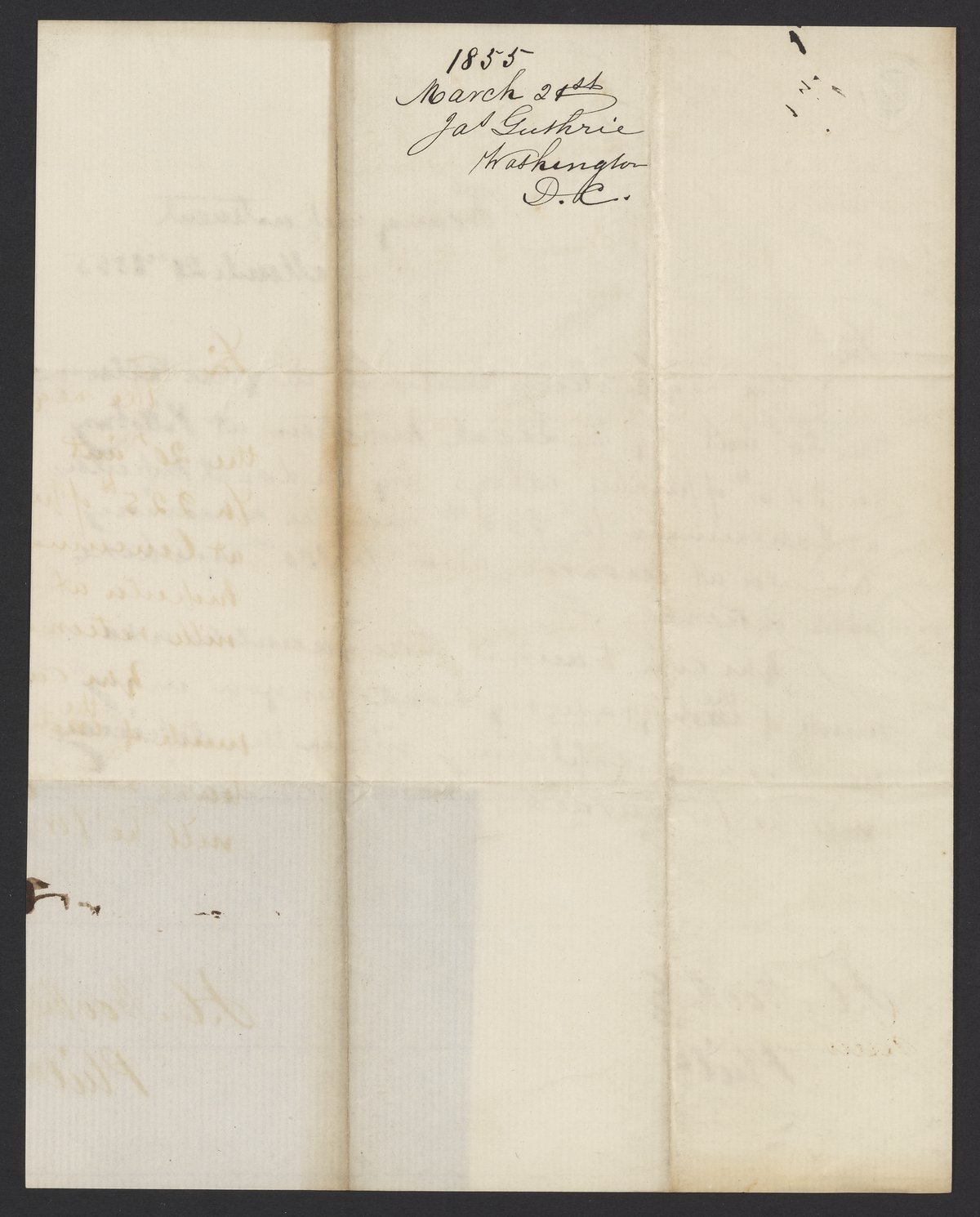 Letter from James B. Guthrie to James Curtis Booth, March 21, 1855