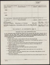 Small JPG1200 x 1559px — 362 KBLarge JPG2880 x 3742px — 1.8 MBFull-sized JPG4994 x 6488px — 5.0 MBOriginal fileTIFF — 4994 x 6488px — 92.7 MBTwo copies of a grant application for funding to study the molecular structure of viruses using X-ray diffraction, filled out by Rosalind Franklin (1920-1958) and Aaron Klug (1926-2018), and submitted to the National Institutes of Health.