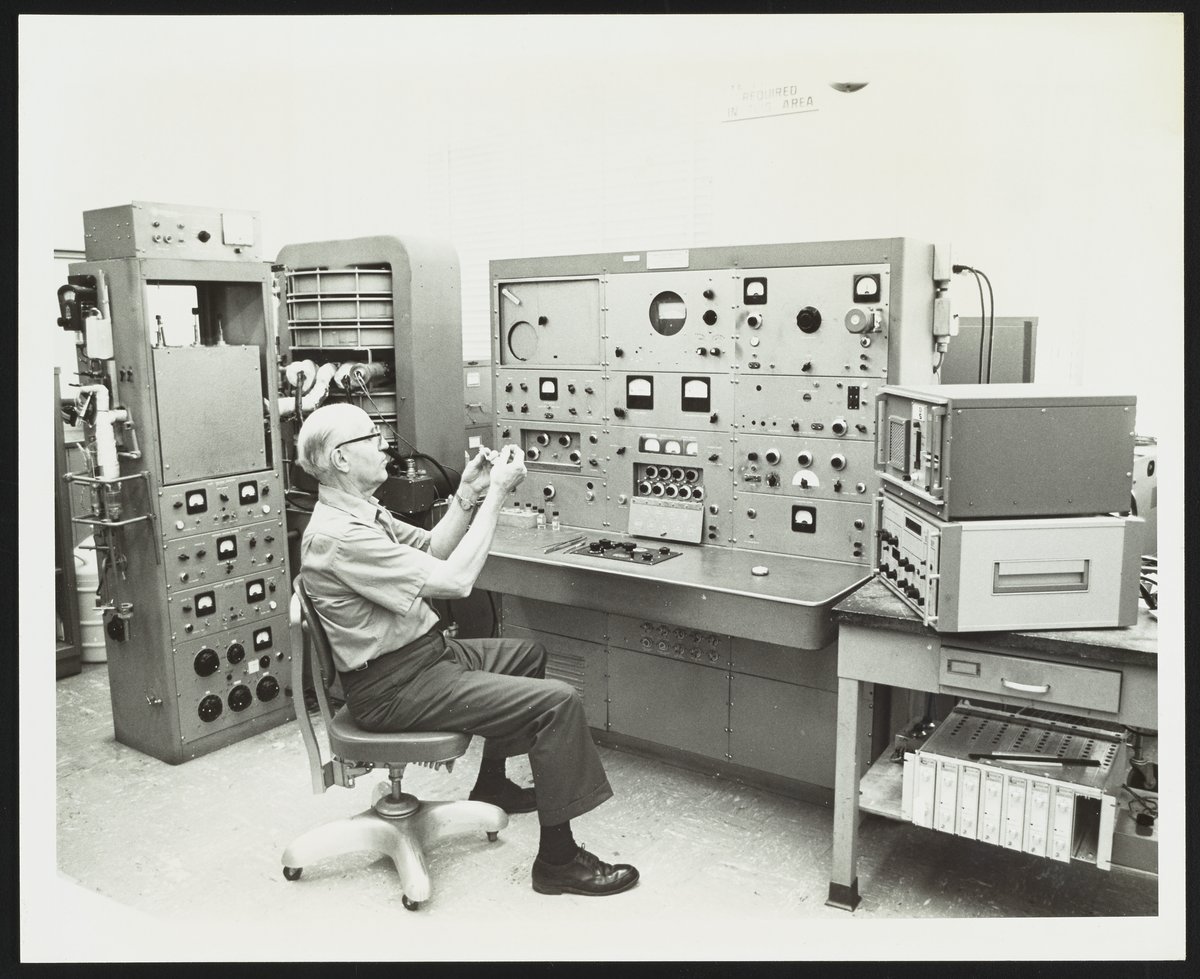 “Model 21-103 Mass Spectrometer in Use at Exxon Analytical Research Laboratory,” May 1974. Henry Earle Lumpkin Photograph Collection, Box 1. Science History Institute. Philadelphia. https://digital.sciencehistory.org/works/jm214p131.