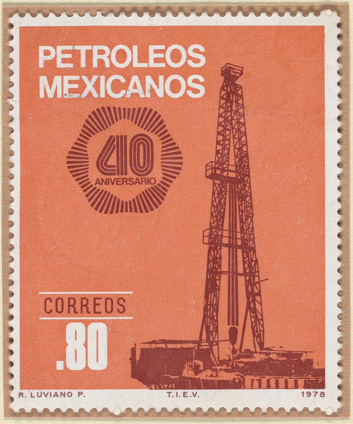 Mexico. Dirección General de Talleres de Impresión de Estampillas y Valores. “Mexican Postage Stamp Commemorating Petróleos Mexicanos (40th Anniversary),” 1978. Witco Stamp Collection, Box 7. Science History Institute. Philadelphia. https://digital.sciencehistory.org/works/jn7da1k.