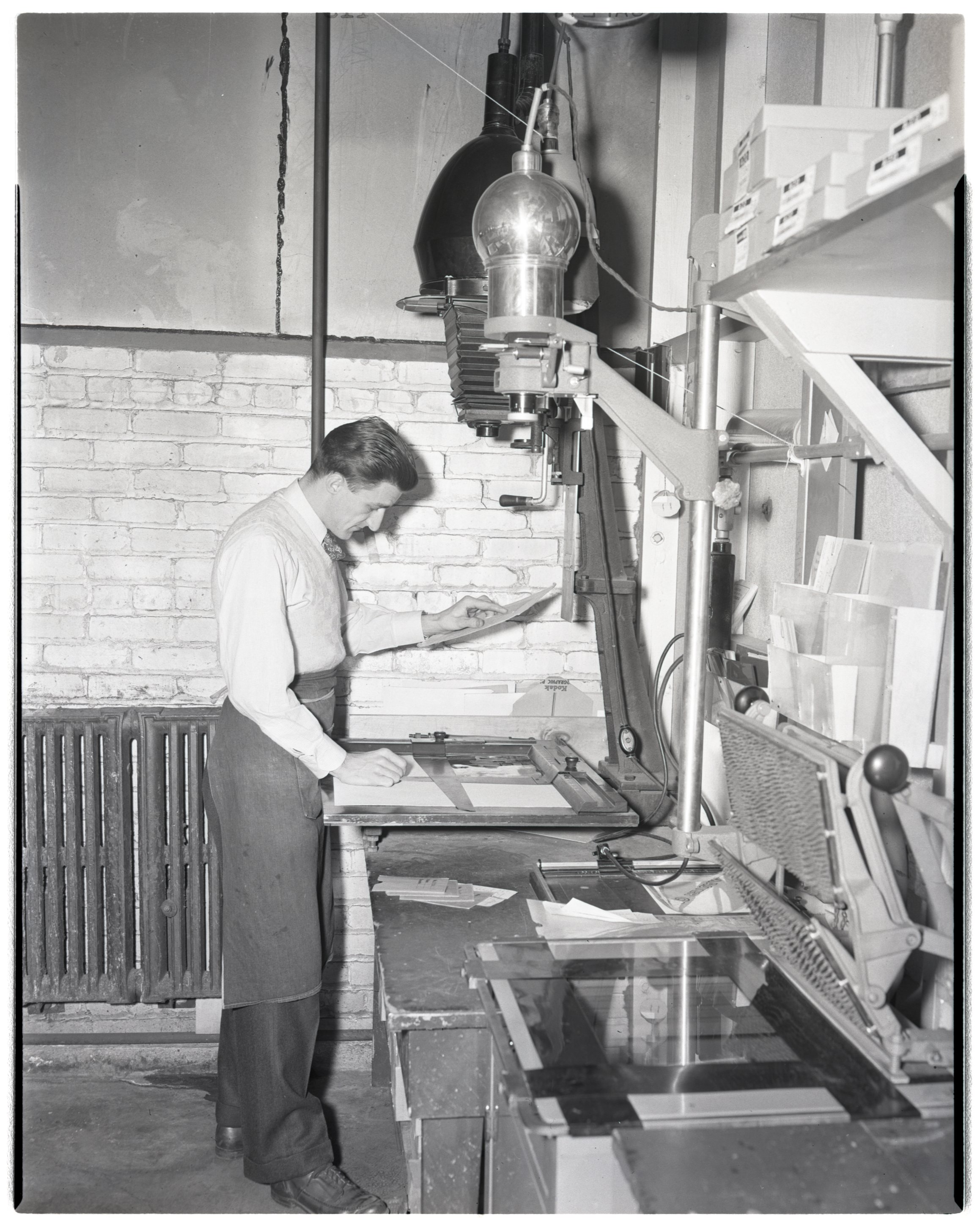 Ford Bowers printing photographs in Dow Photographic Laboratory