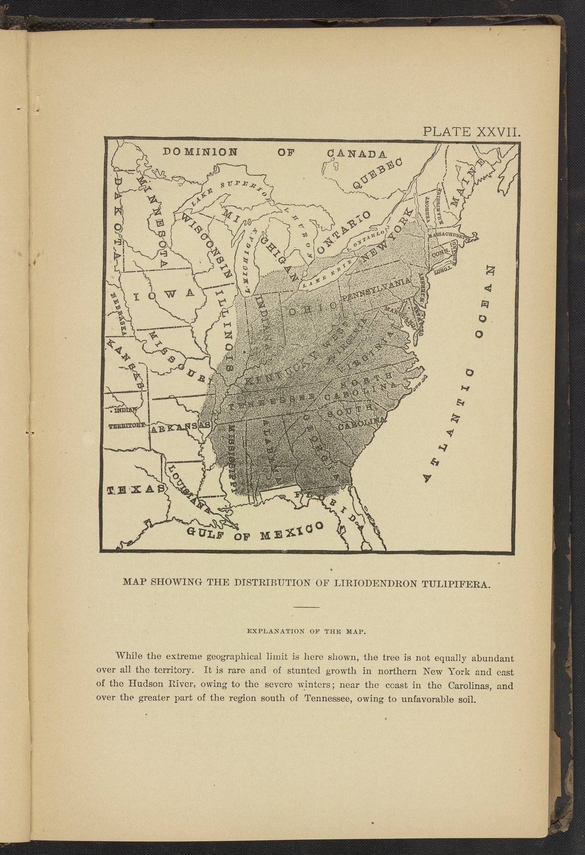Plate XXVII: Map showing the distribution of Liriodendron Tulipifera