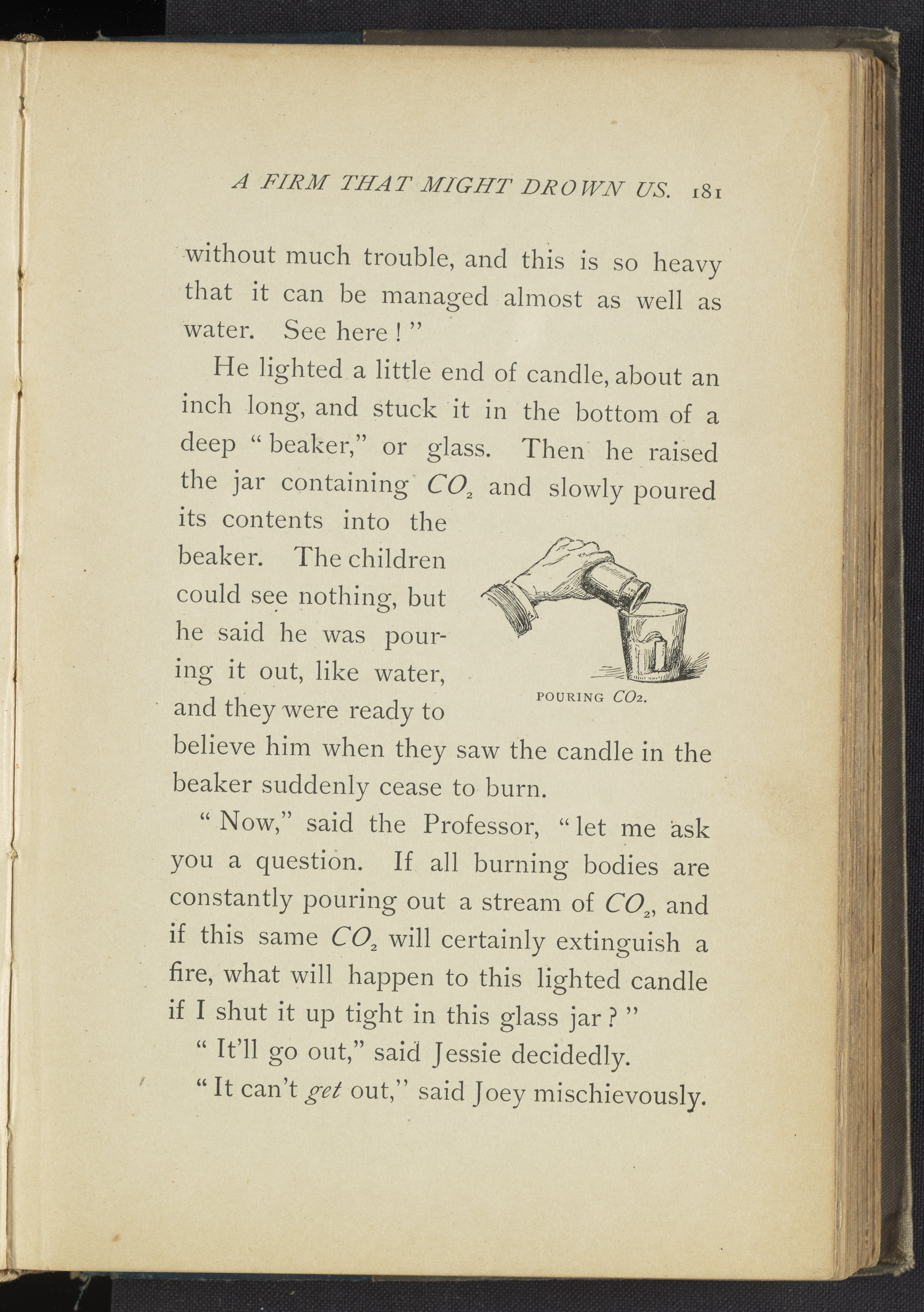 Meyer, Lucy Rider. “Pouring CO2.” Real Fairy Folks, or, Fairy Land of Chemistry: Explorations in the World of Atoms. Boston, Massachusetts: Lothrop Publishing Company, 1887. https://digital.sciencehistory.org/works/js956g32z.