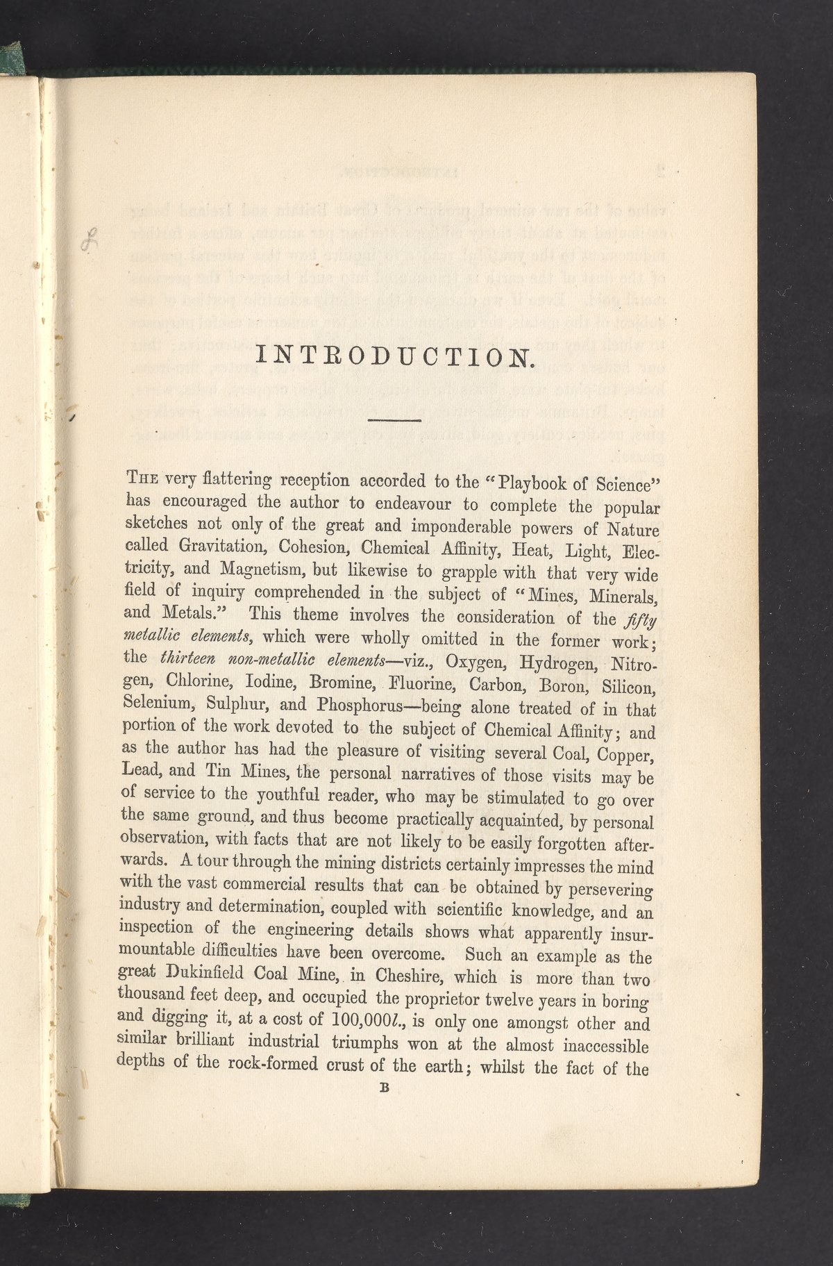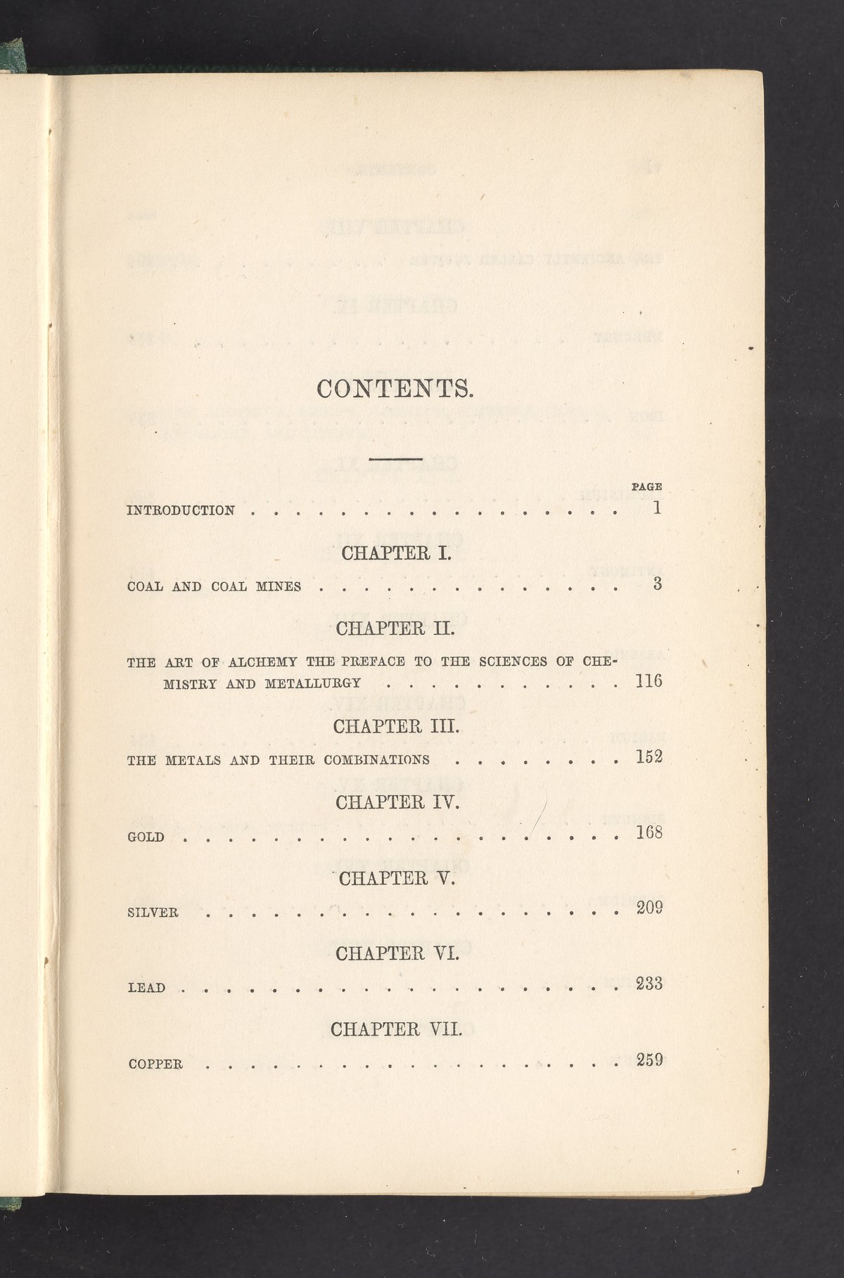 Small JPG1200 x 1660px — 479 KBLarge JPG2880 x 3984px — 2.4 MBFull-sized JPG3925 x 5429px — 4.0 MBOriginal fileTIFF — 3925 x 5429px — 61.0 MBGeared towards young readers, The playbook of metals is an informative and entertaining volume on all aspects of the history, mining, smelting, and metallurgy of the metals then known. The author, John Henry Pepper (1821-1900), was an analytical chemist and professor of chemistry at the Royal Polytechnic, London. Nearly 300 engravings illustrate the text, which includes chapters on coal, coal mines, and the art of alchemy, as well as individual metals and their combinations.