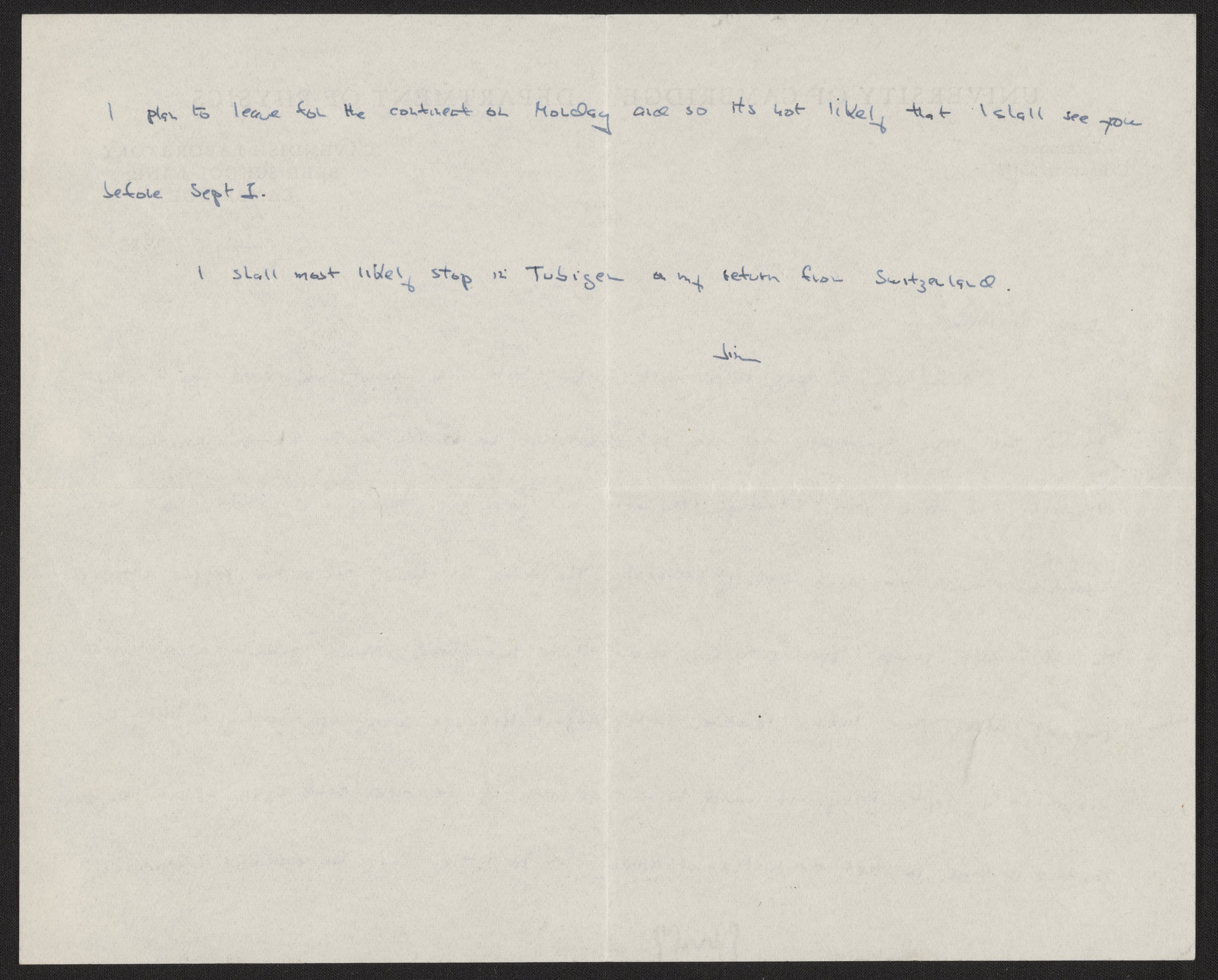 Letter from James D. Watson to Rosalind Franklin, July 22, 1955