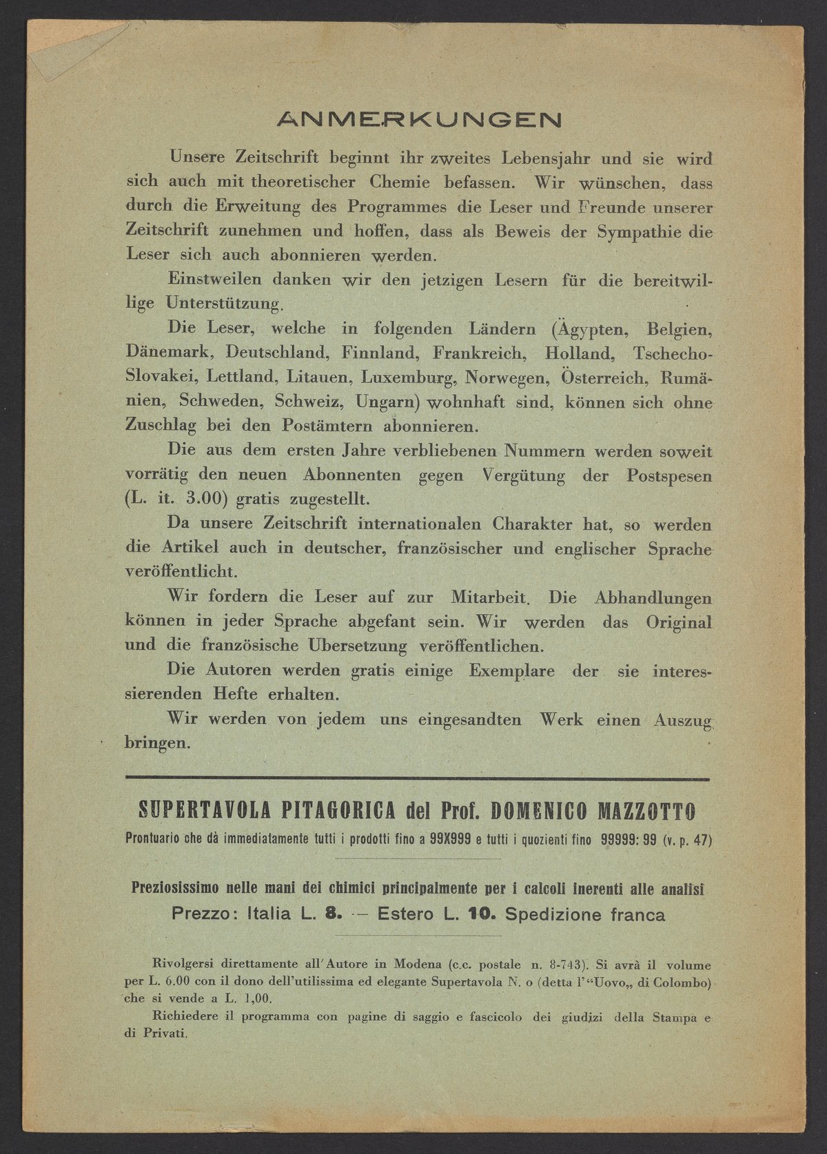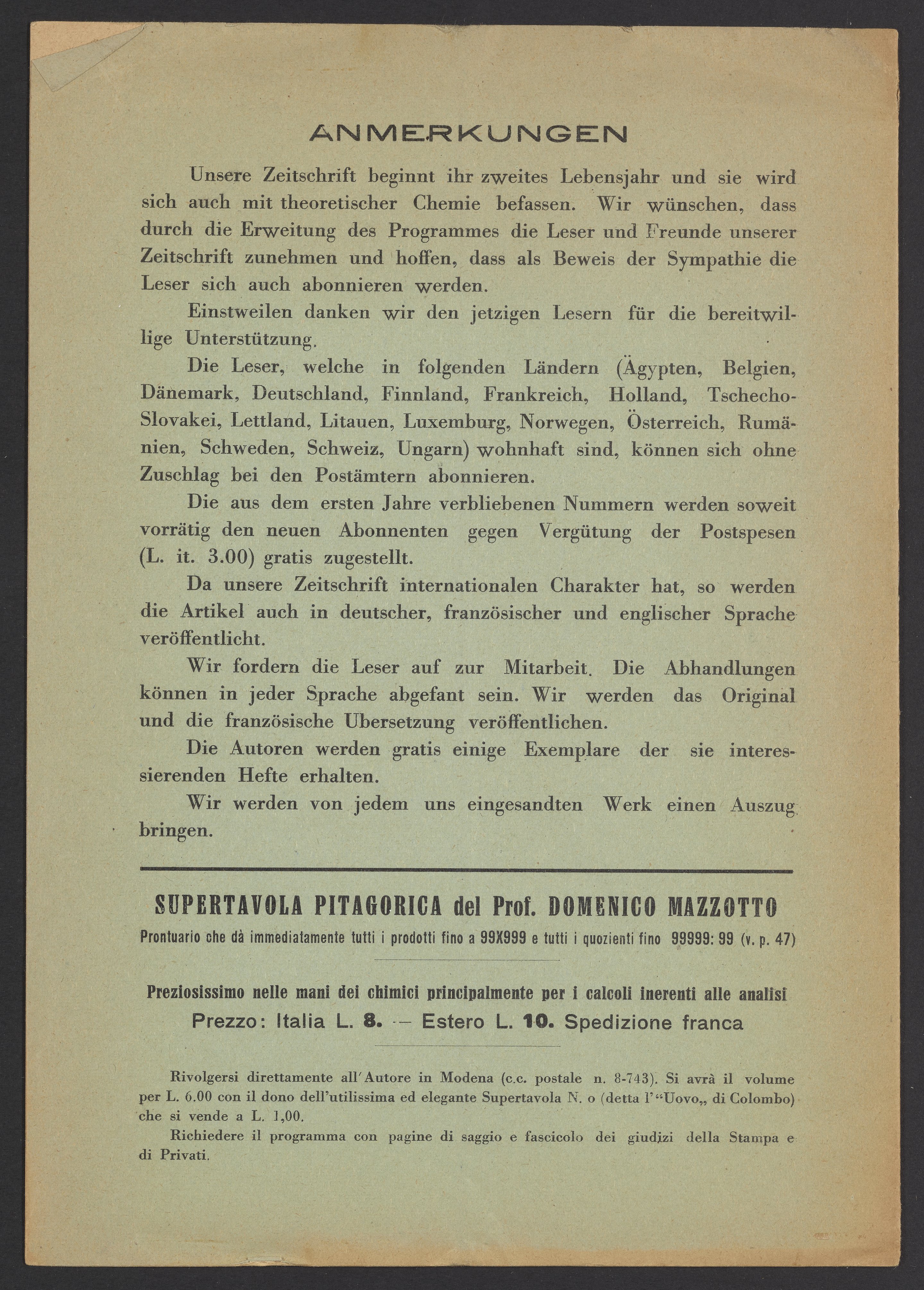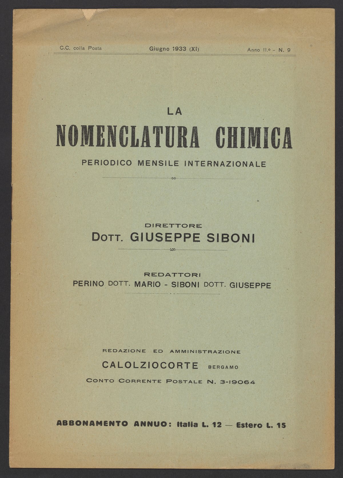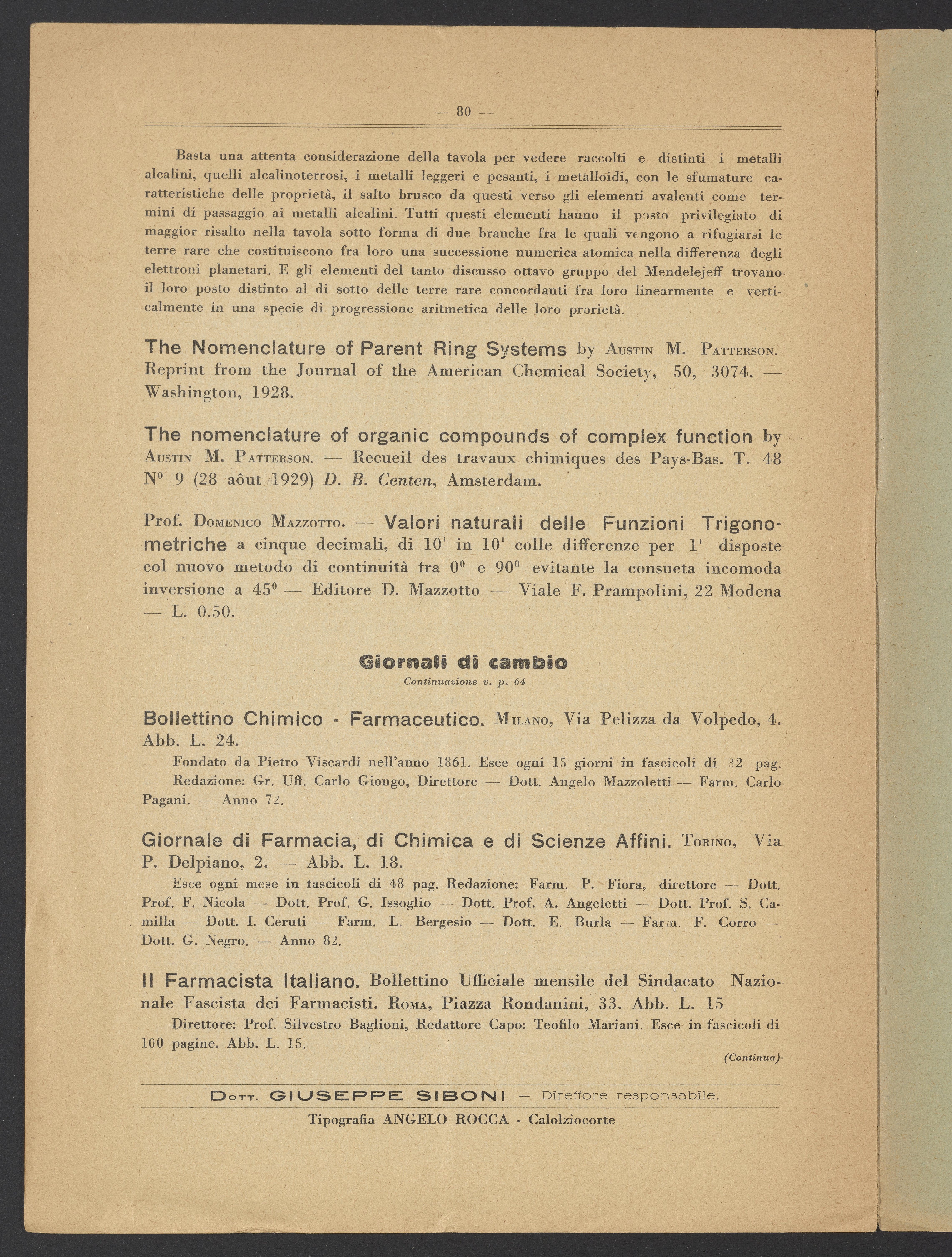 Le Nomenclatura Chemica, Periodico Mensile Internazionale