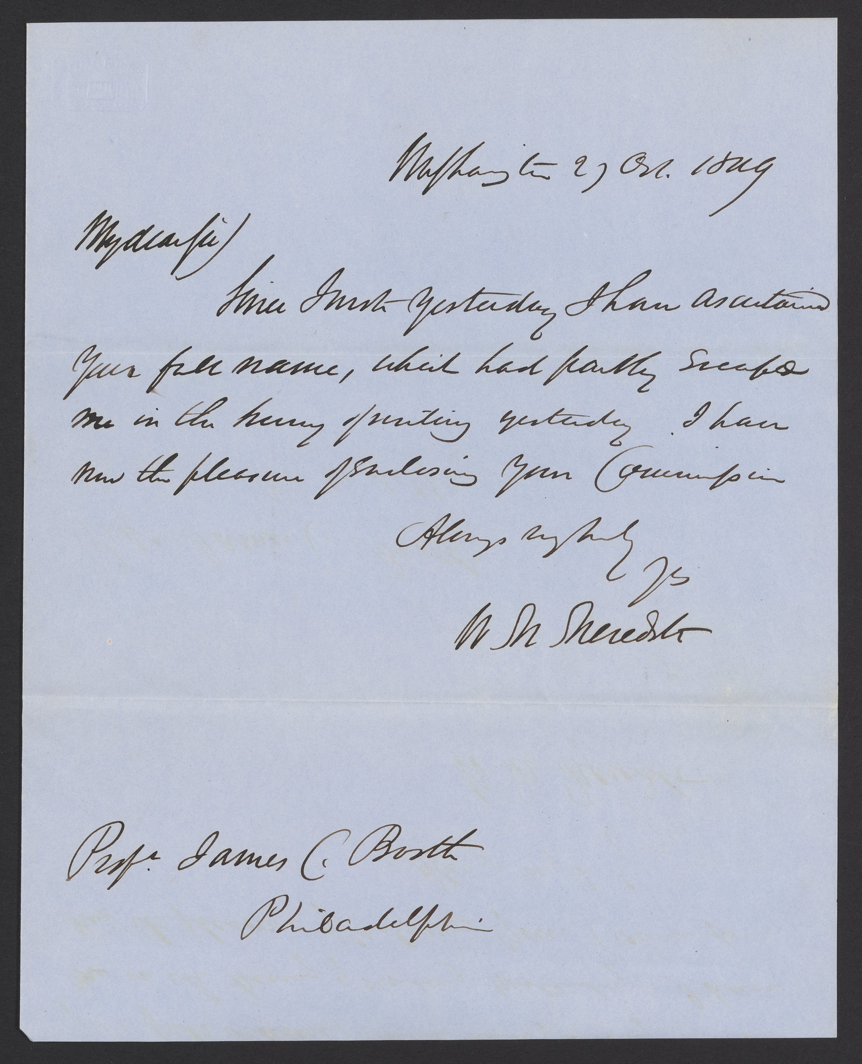Letter from William M. Meredith to James Curtis Booth, October 27, 1869