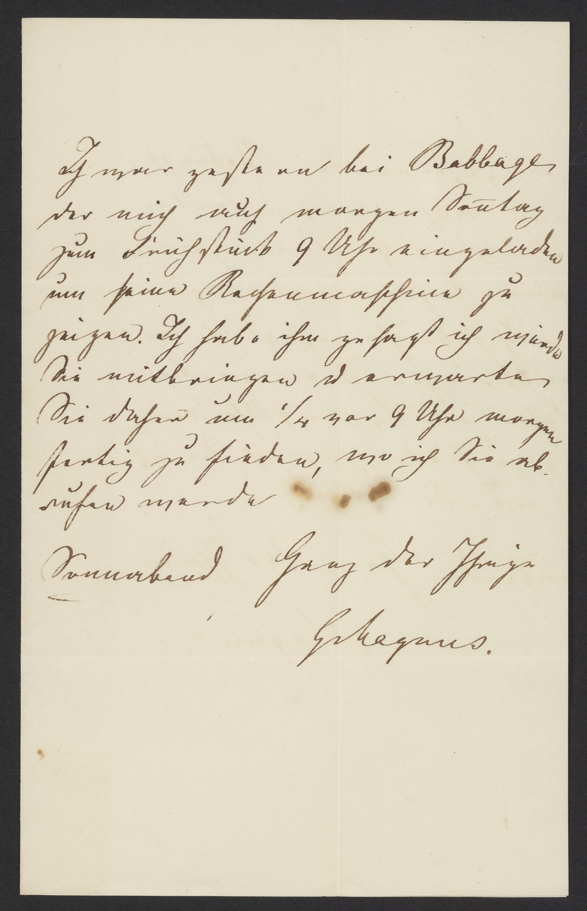 Letter from Professor Gustav Magnus to James Curtis Booth, October 1825