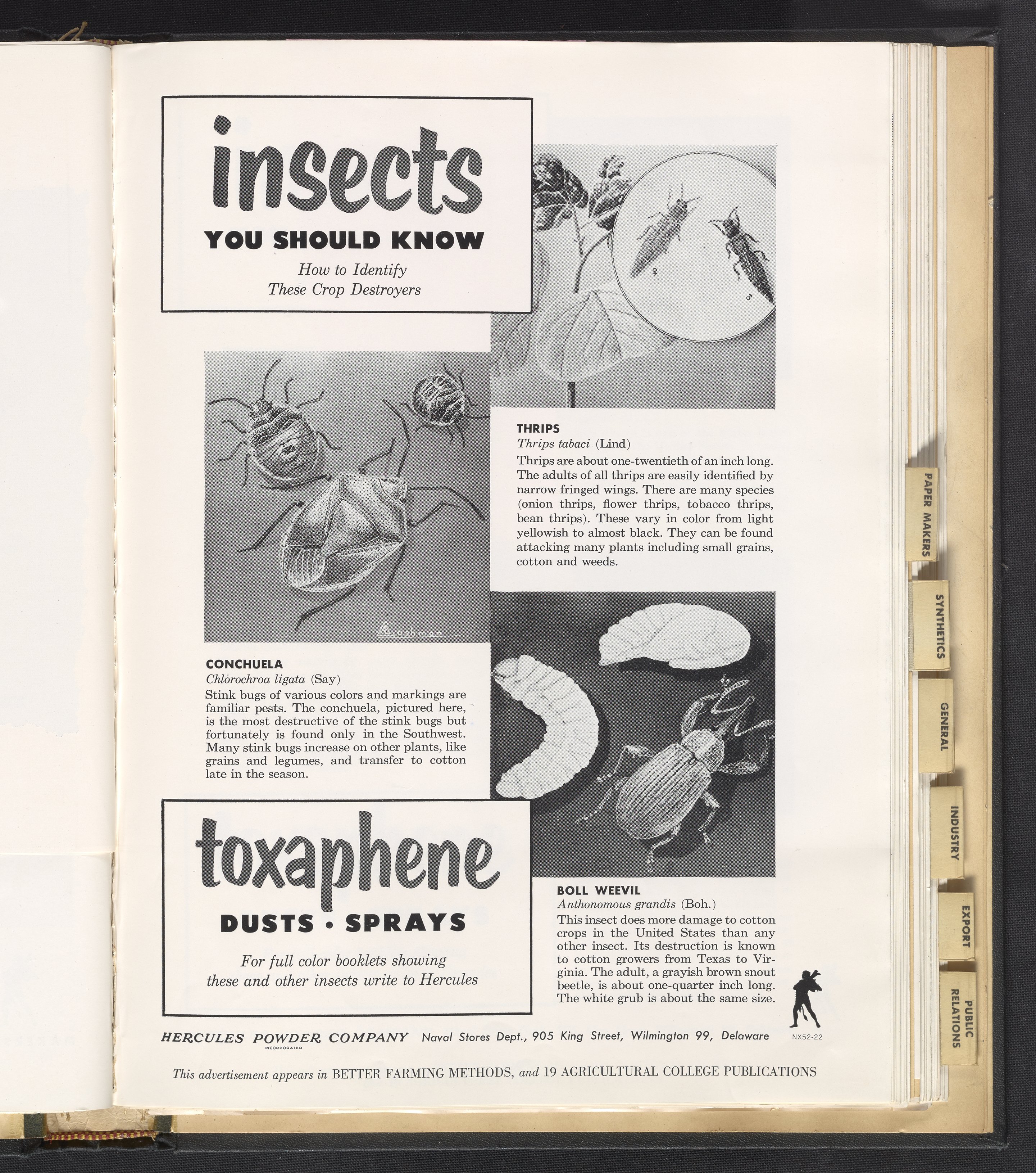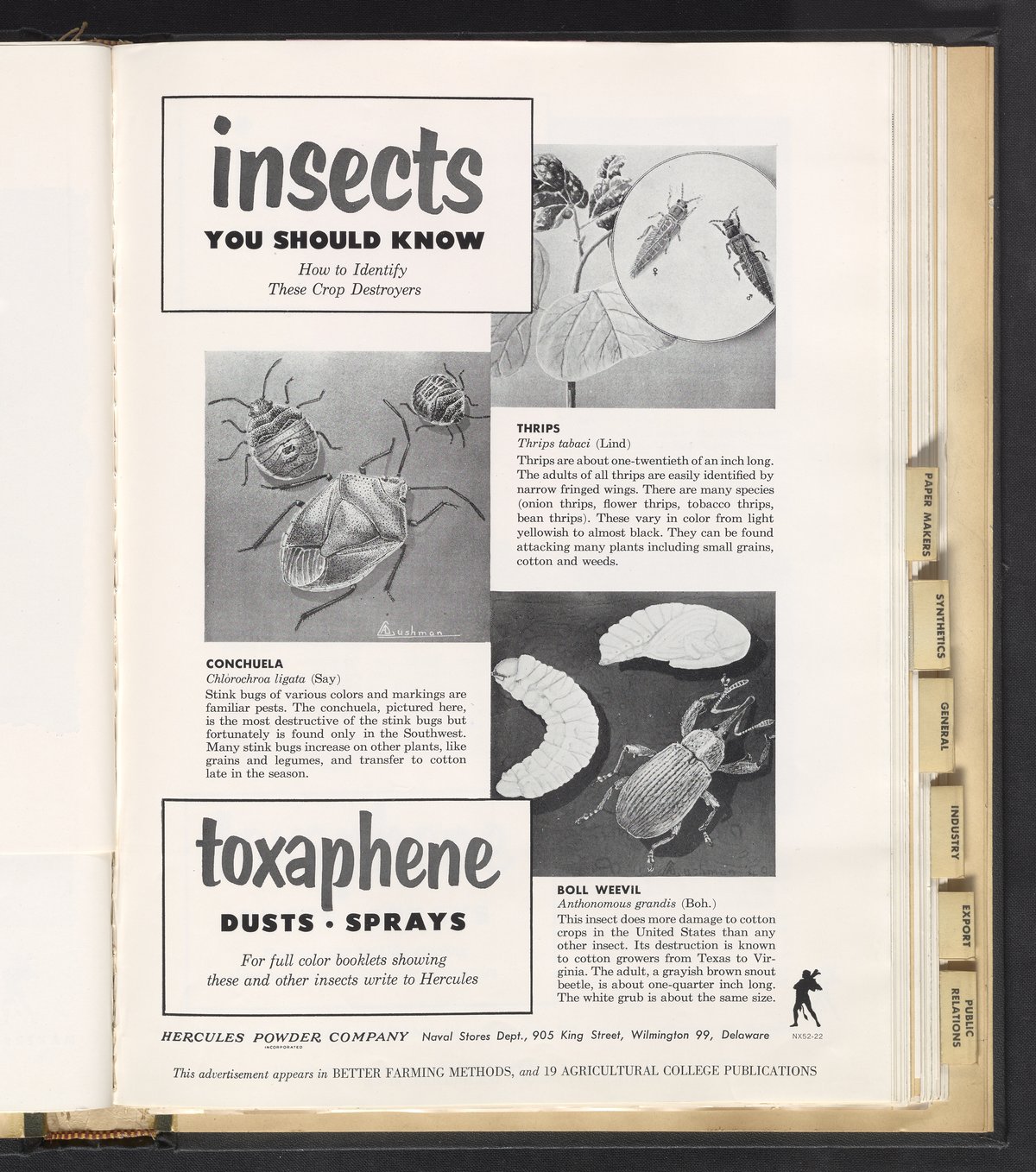 Hercules Incorporated. “Insects You Should Know.” 1952 Hercules Advertisements, 1952. Records of Hercules Incorporated, Volume 1952. Science History Institute. Philadelphia. https://digital.sciencehistory.org/works/k06988285.