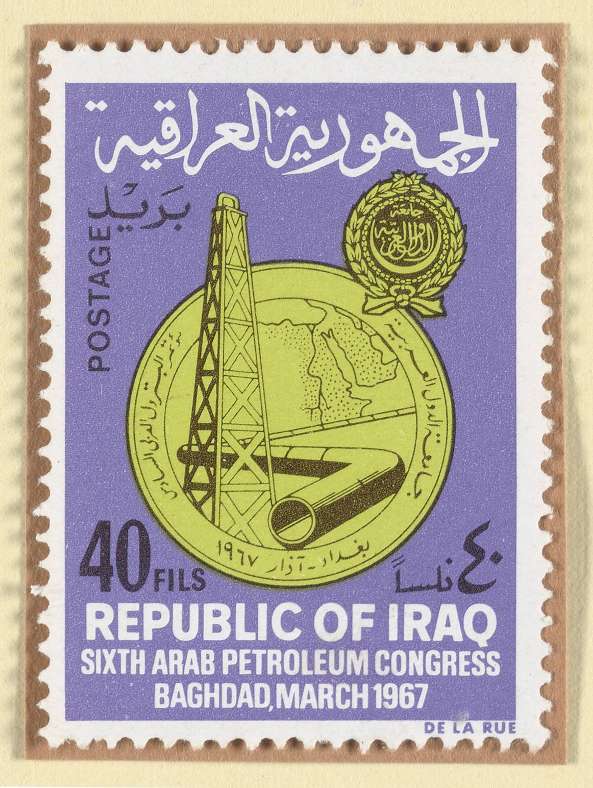Iraqi postage stamp commemorating the 6th Annual Arab Petroleum Congress, Baghdad
