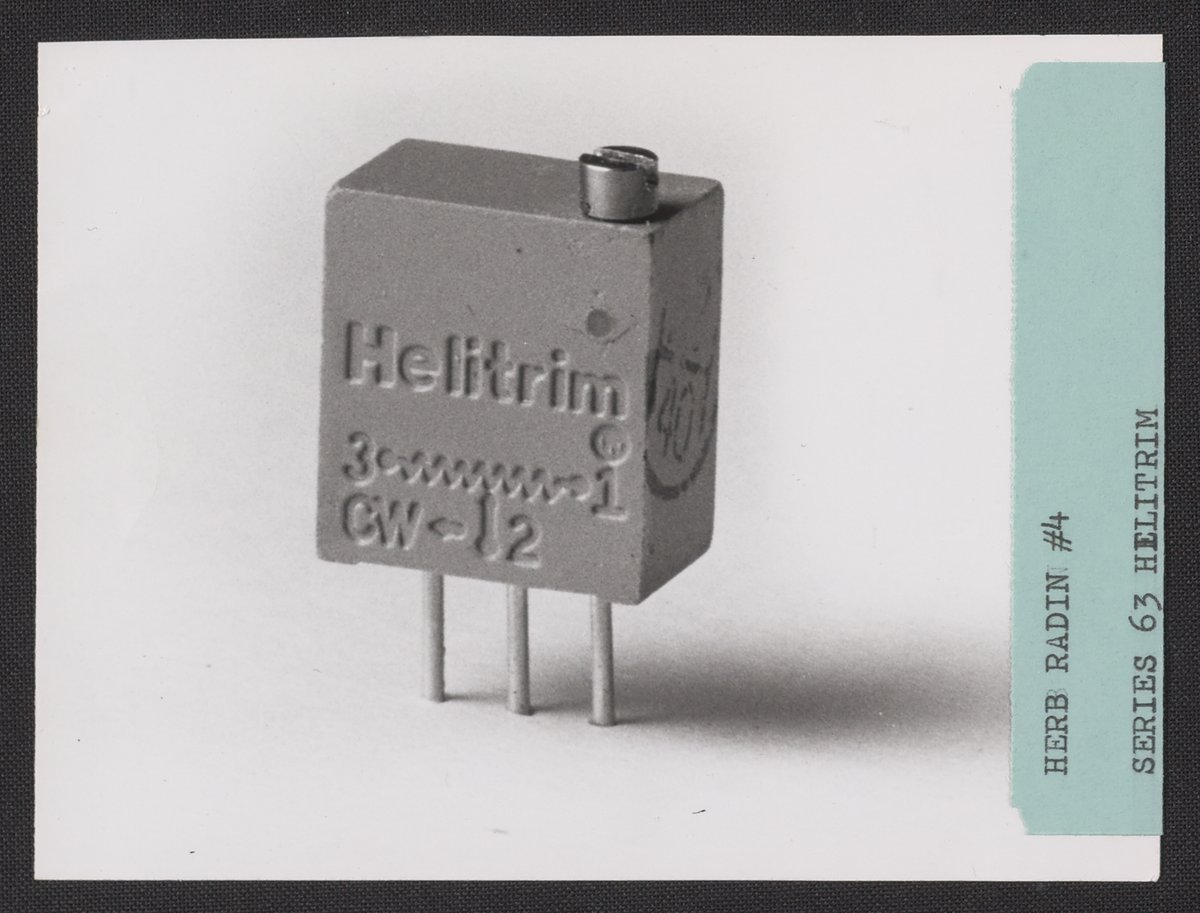 Herb Radin and Associates. “Helitrim Series 63 Trimming Potentiometer,” 1950–1969. Beckman Historical Collection, Box 85. Science History Institute. Philadelphia. https://digital.sciencehistory.org/works/k643b1585.