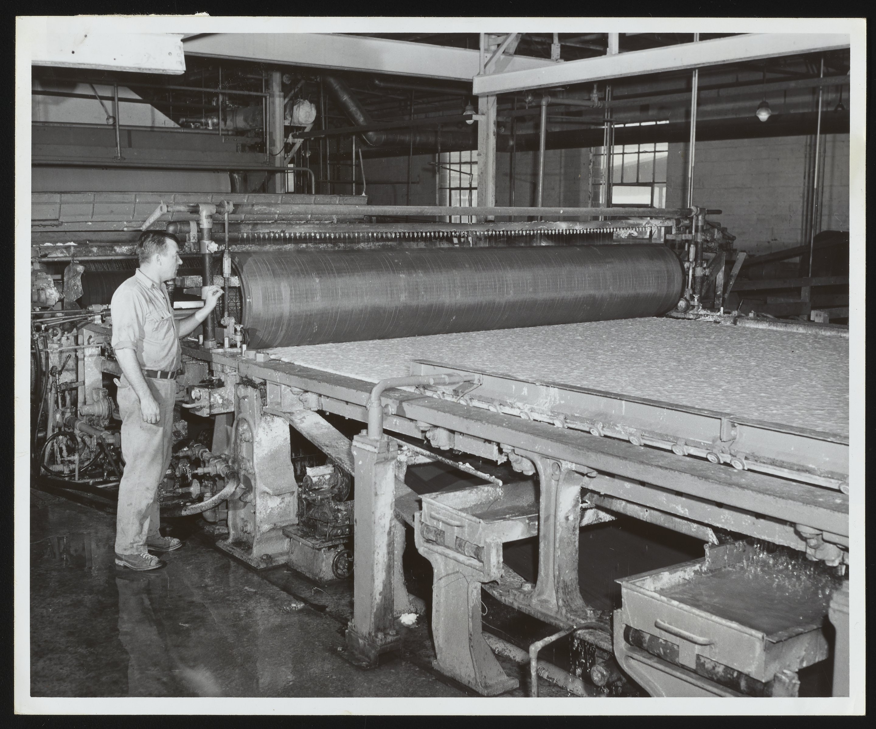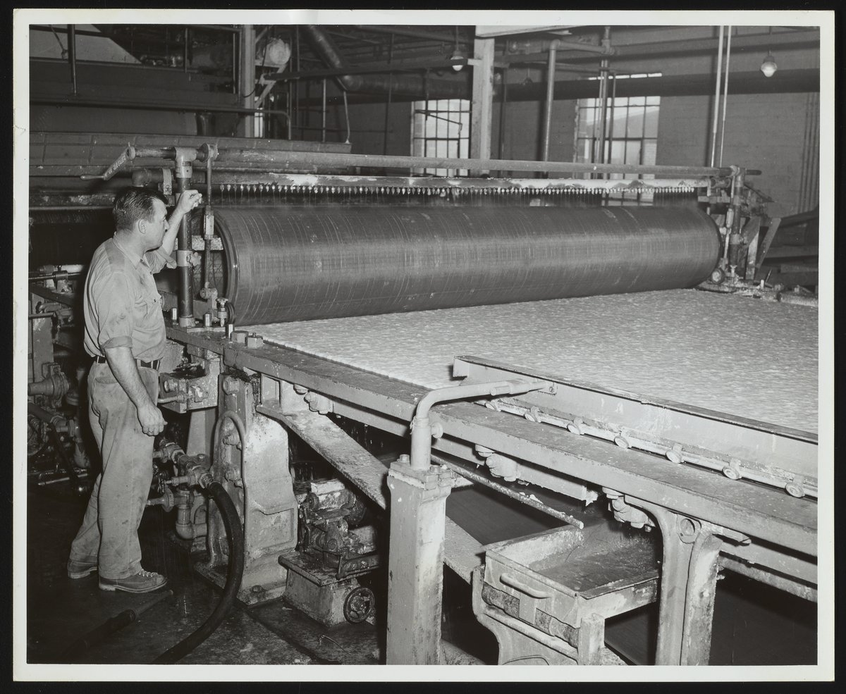 Employee operating paper machine at Hercules Hopewell plant