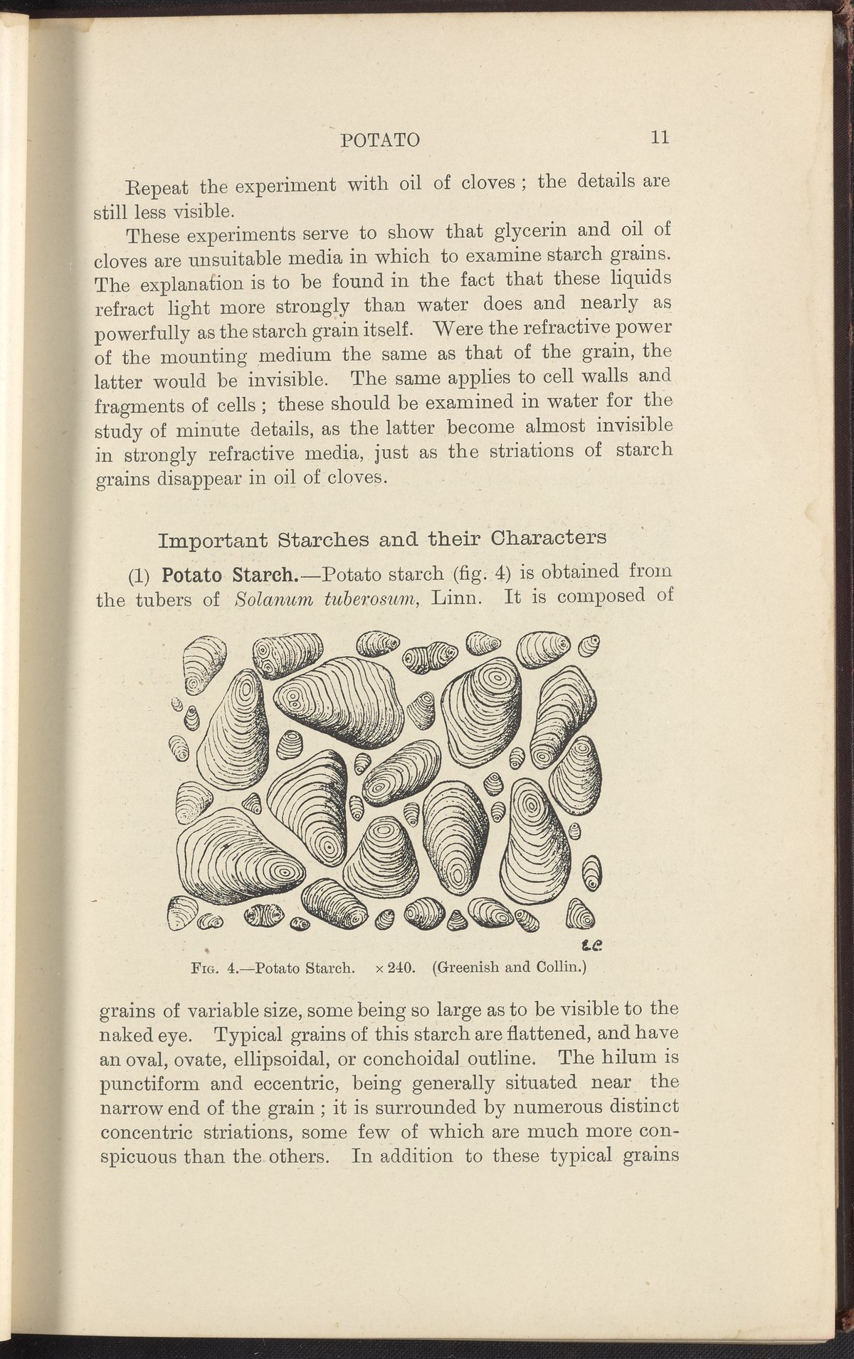 Small JPG1200 x 1698px — 432 KBFull-sized JPG2728 x 3859px — 2.0 MBOriginal fileTIFF — 2728 x 3859px — 30.2 MBA textbook specifically devoted to the "practical instruction in the methods of examining vegetable foods, drugs, and their powders" written by Henry George Greenish, Professor of Pharmaceutics to the Pharmaceutical Society of Great Britain. Intended to provide students who already possess a background in botany the instruction necessary to examine vegetable powders. Content is ordered from the least complicated structures (starches) to the most complex forms (fruits and roots). Includes 168 illustrations of microscopic views, appendices listing reagents of general utility and the chief varieties of cell walls and contents, an index, and a list of other publications by J. & A. Churchill publishers. The work is digitized in its entirety.