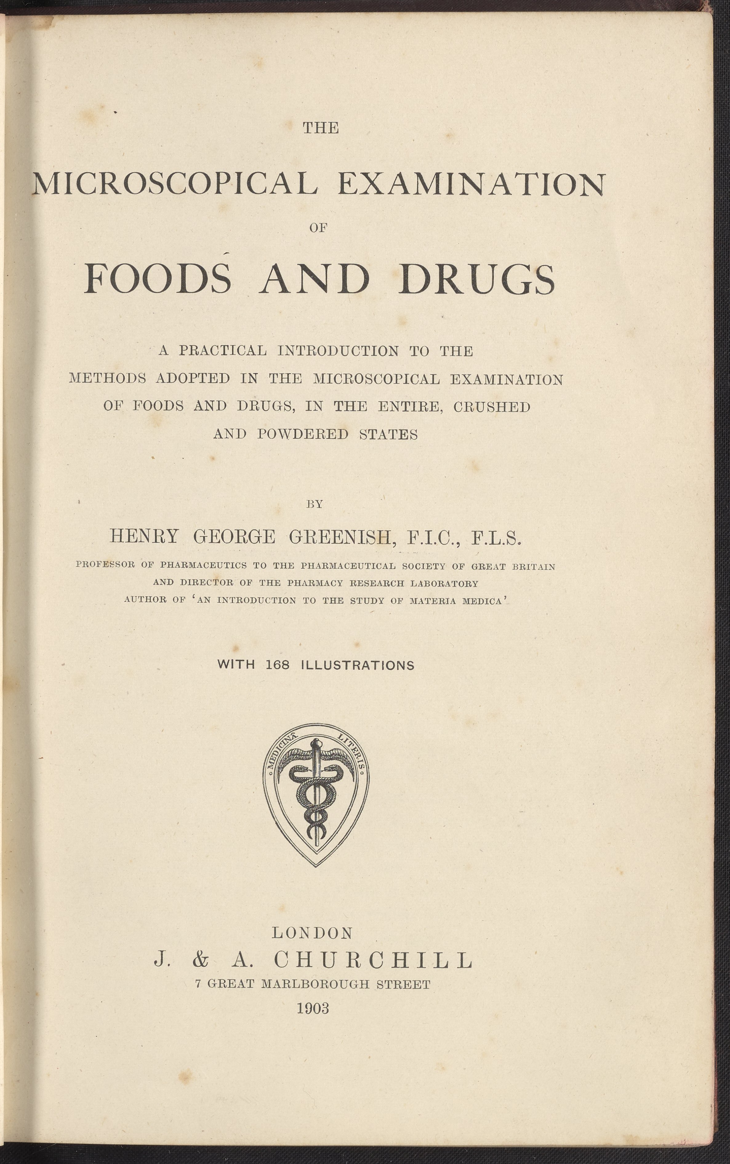 Greenish, Henry G. (Henry George). “The Microscopical Examination of Foods and Drugs.” London, England: J. & A. Churchill, 1903. TX543 .G74 1903. Science History Institute. Philadelphia. https://digital.sciencehistory.org/works/k6adwv7.