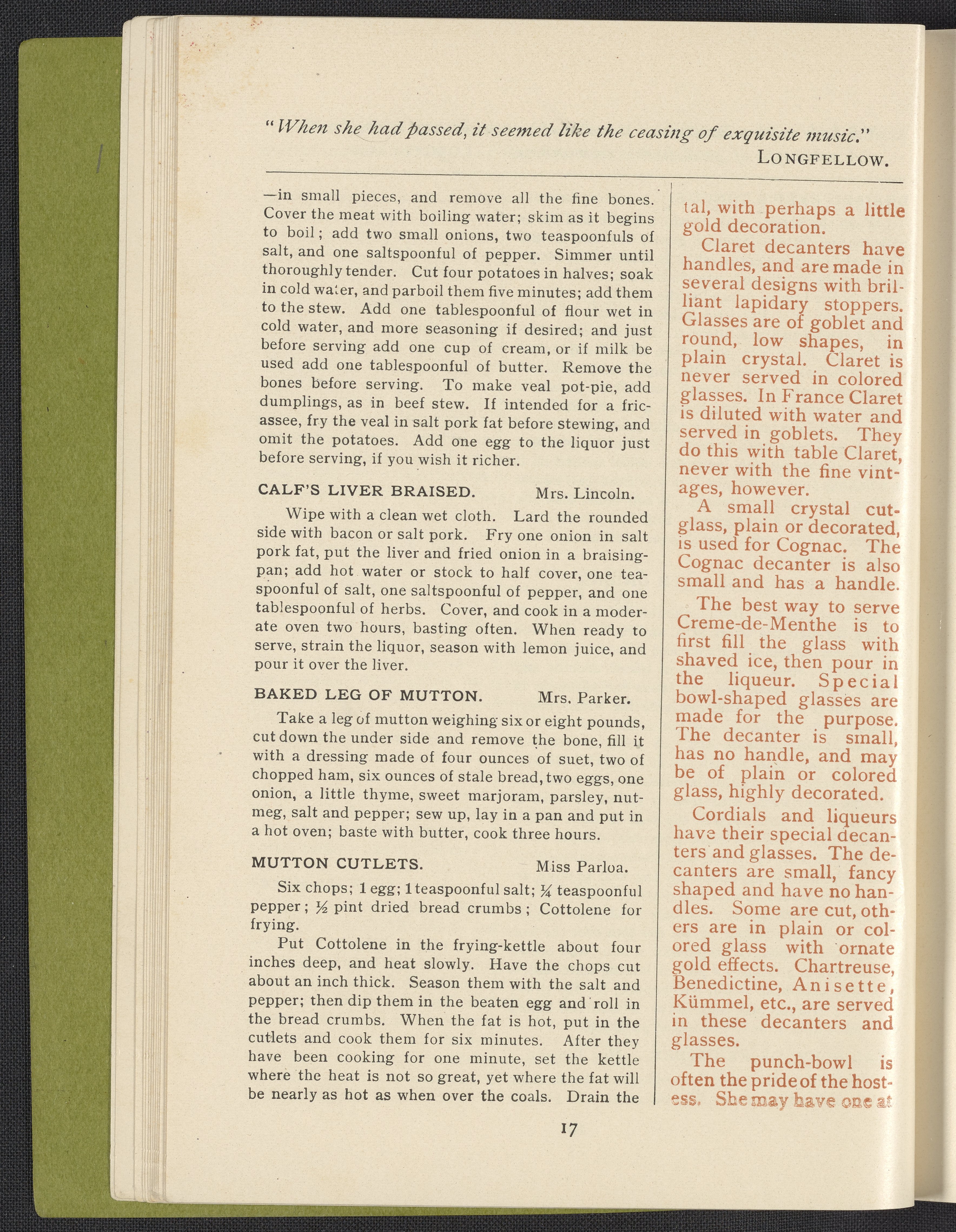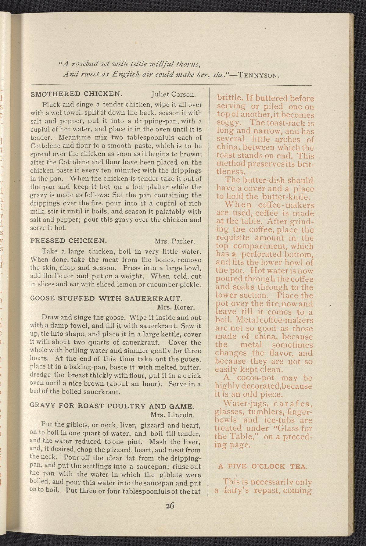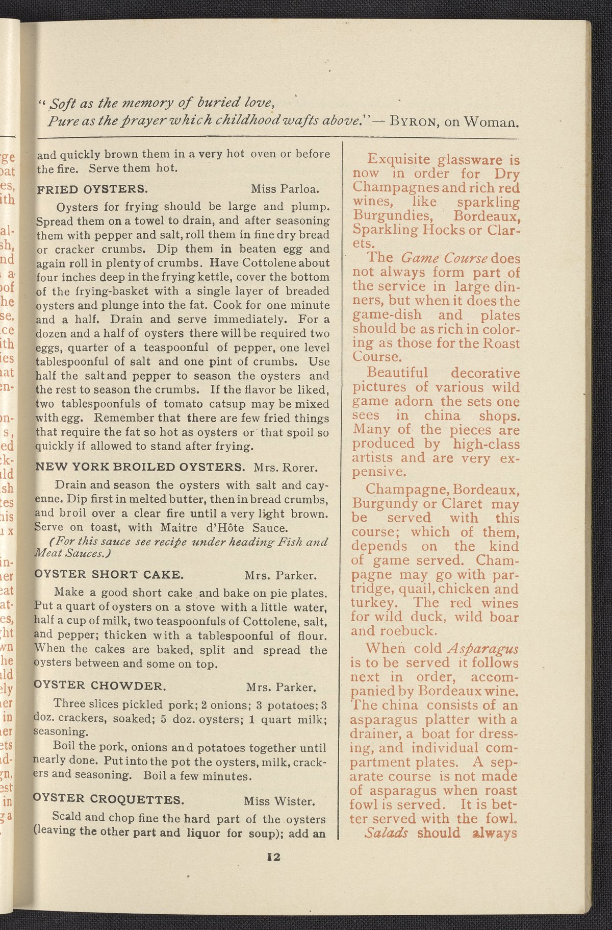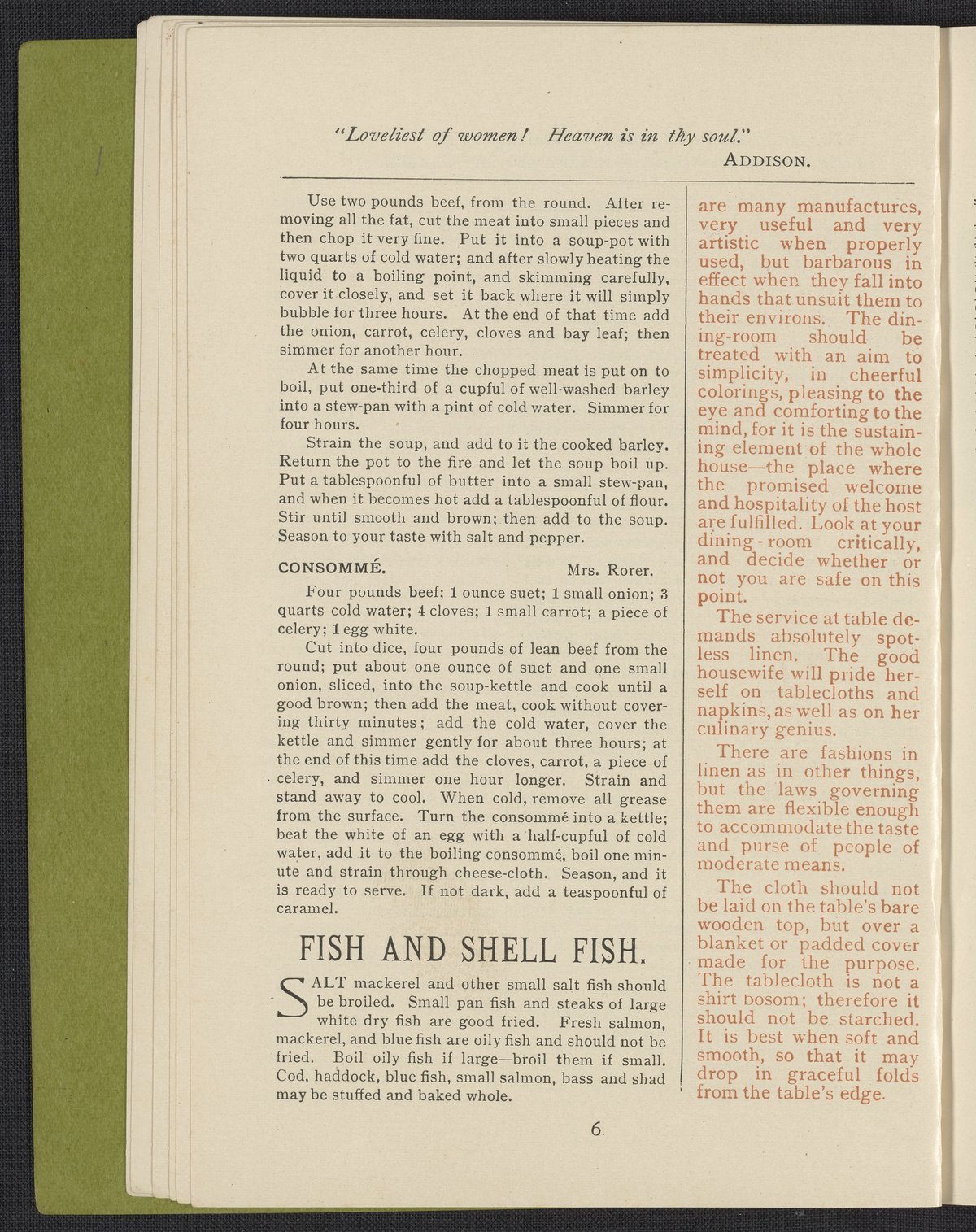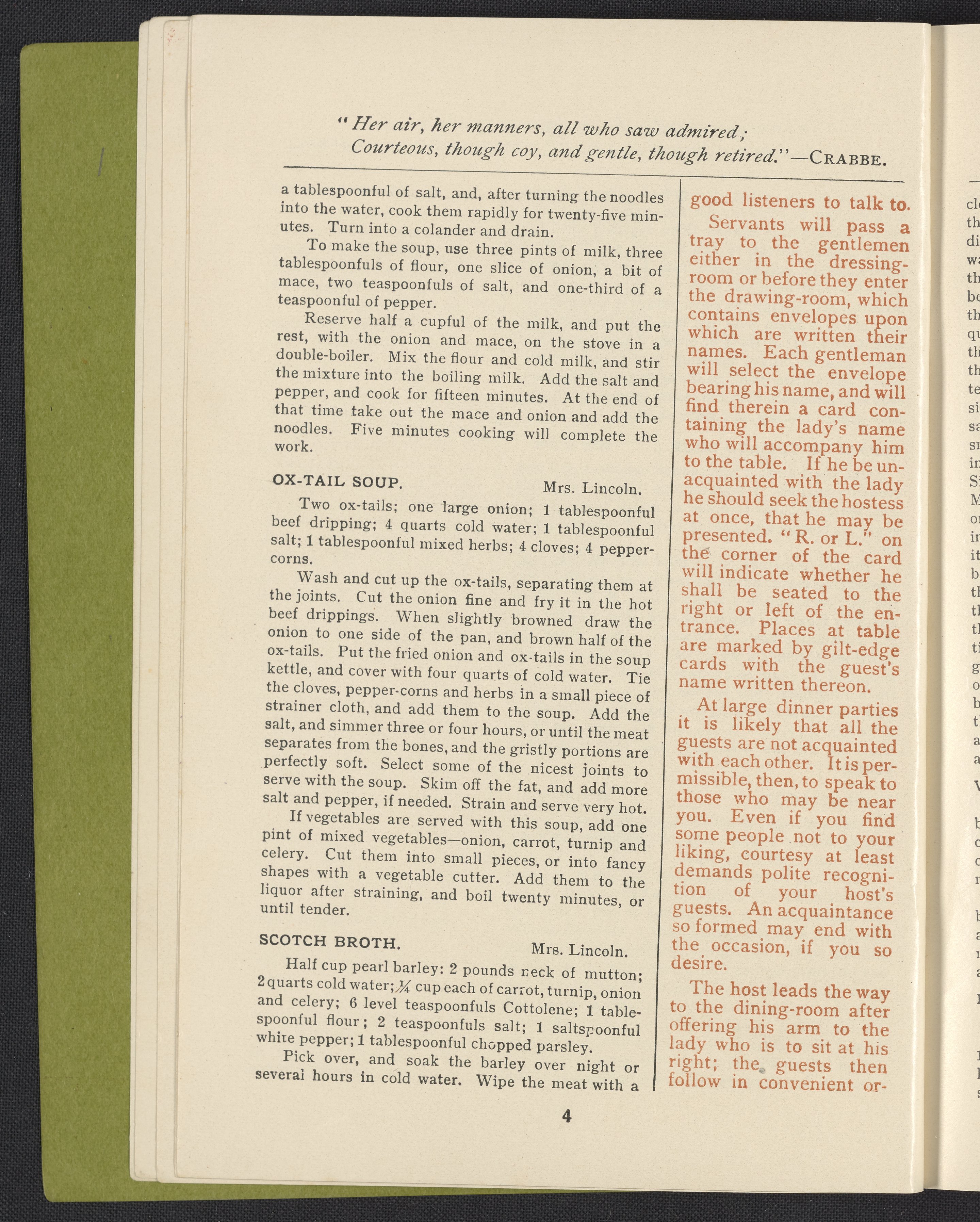 Small JPG1200 x 1648px — 361 KBLarge JPG2880 x 3956px — 2.1 MBFull-sized JPG3266 x 4486px — 2.7 MBOriginal fileTIFF — 3266 x 4486px — 42.0 MBA collection of recipes using Cottolene, a brand of shortening made from beef tallow and cottonseed oil, that was manufactured by the N. K. Fairbank Company. Cottolene was produced from 1868 until the mid-20th century. Many cookbooks, such as this one, were written to promote its use. Advertisements for other products are interspersed throughout.