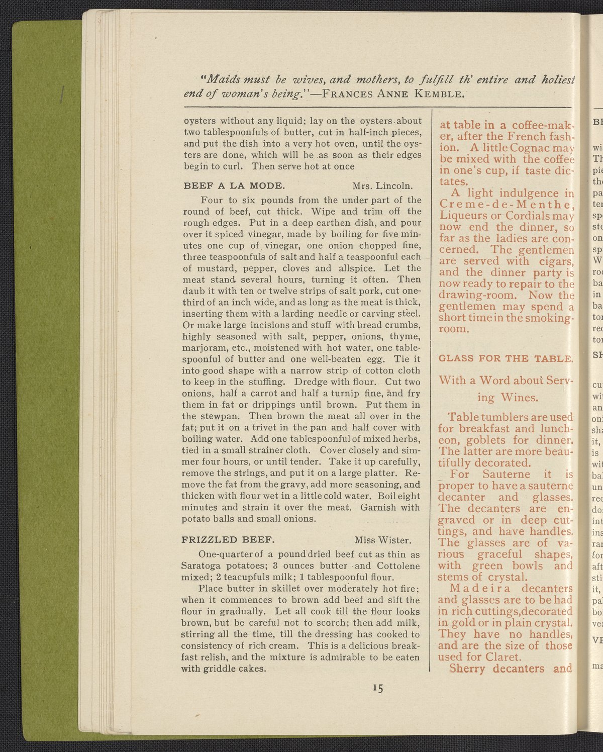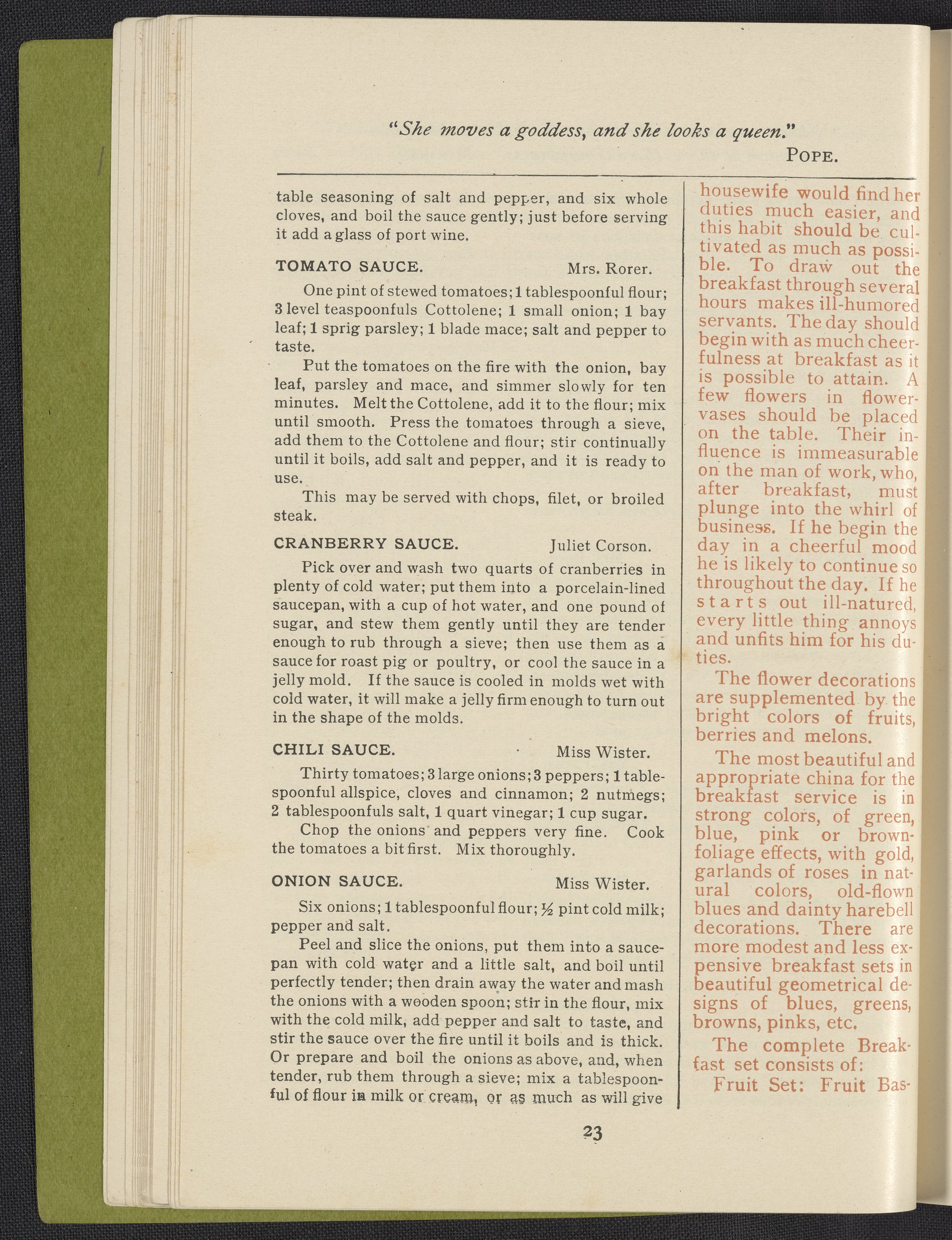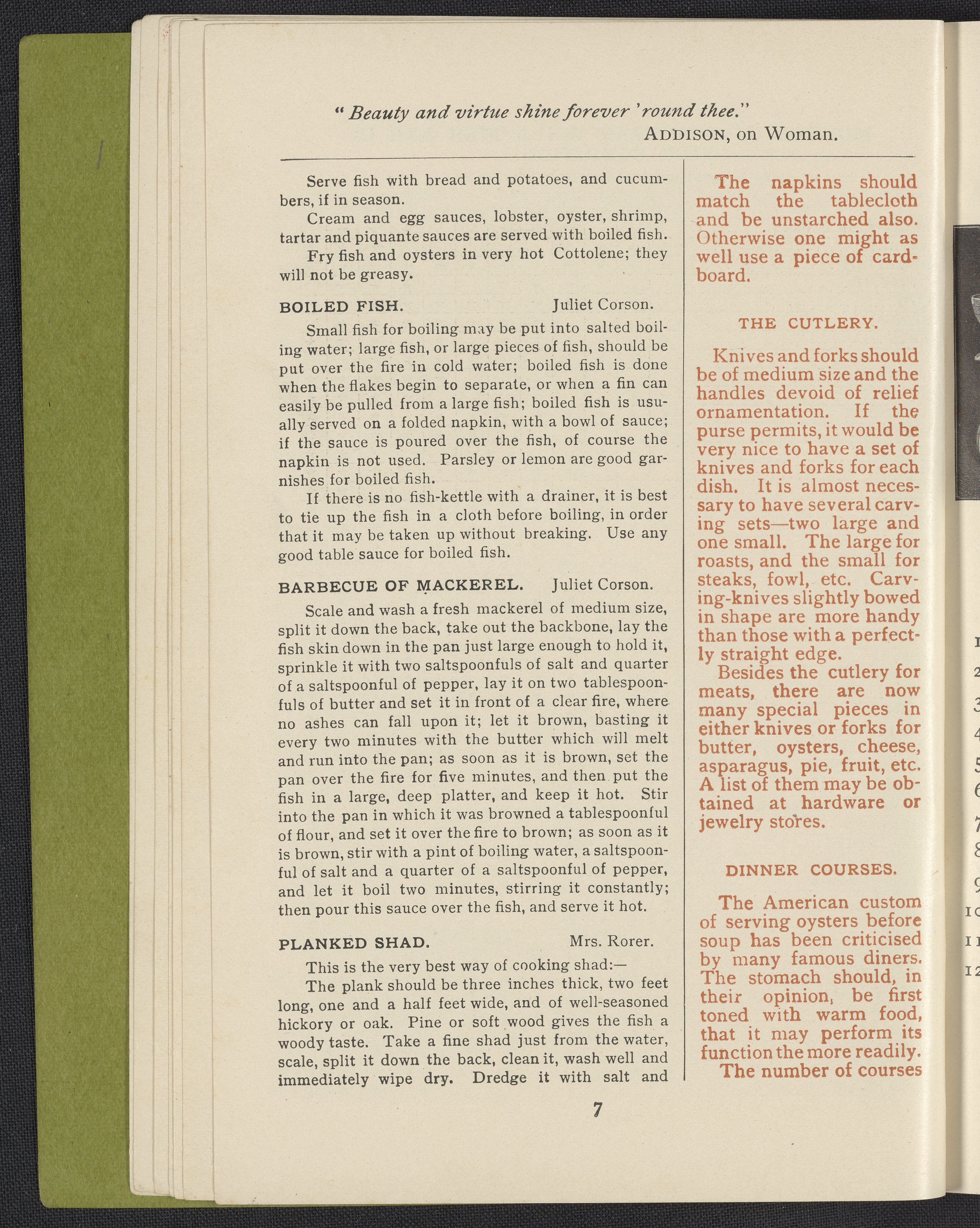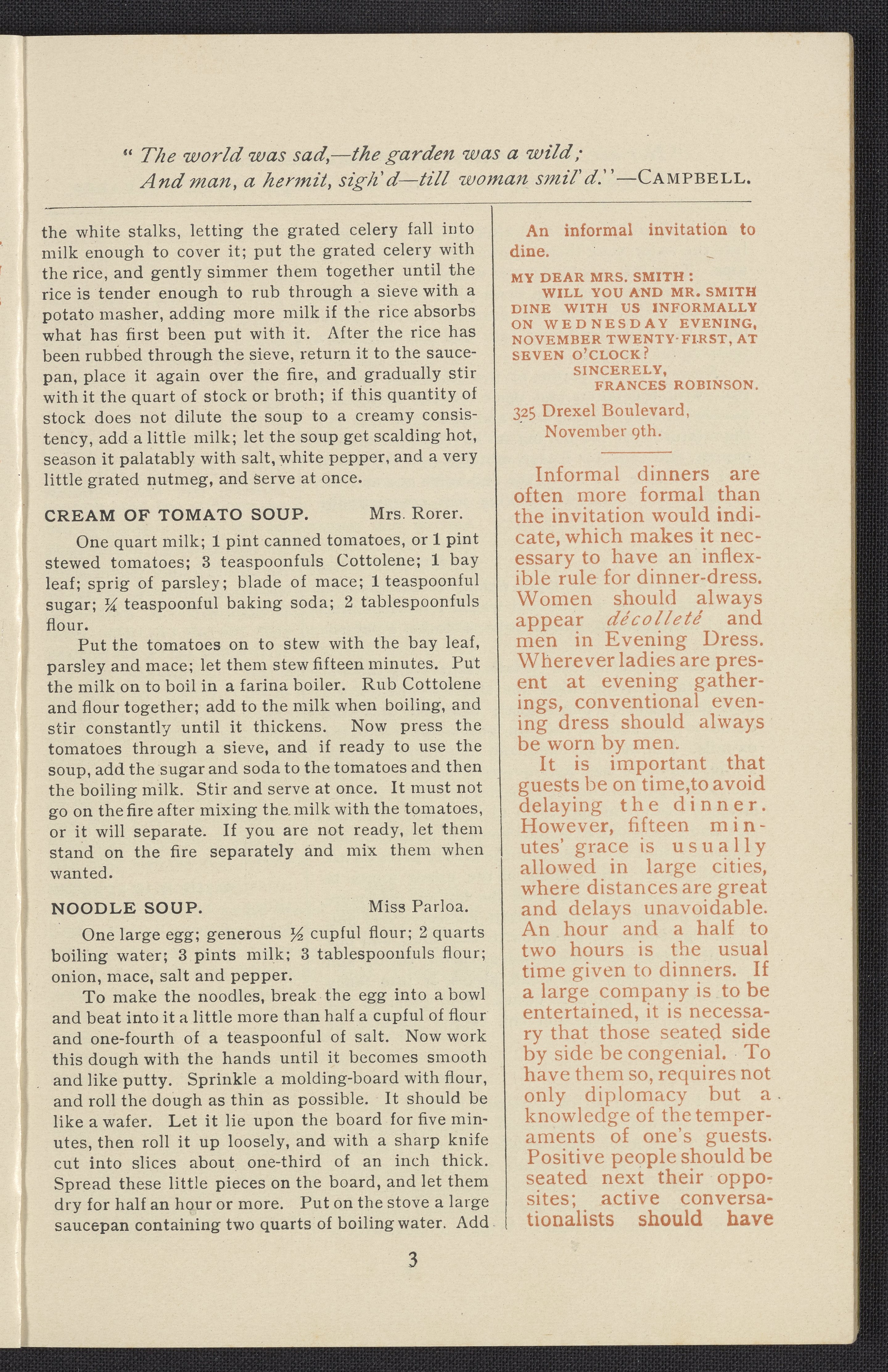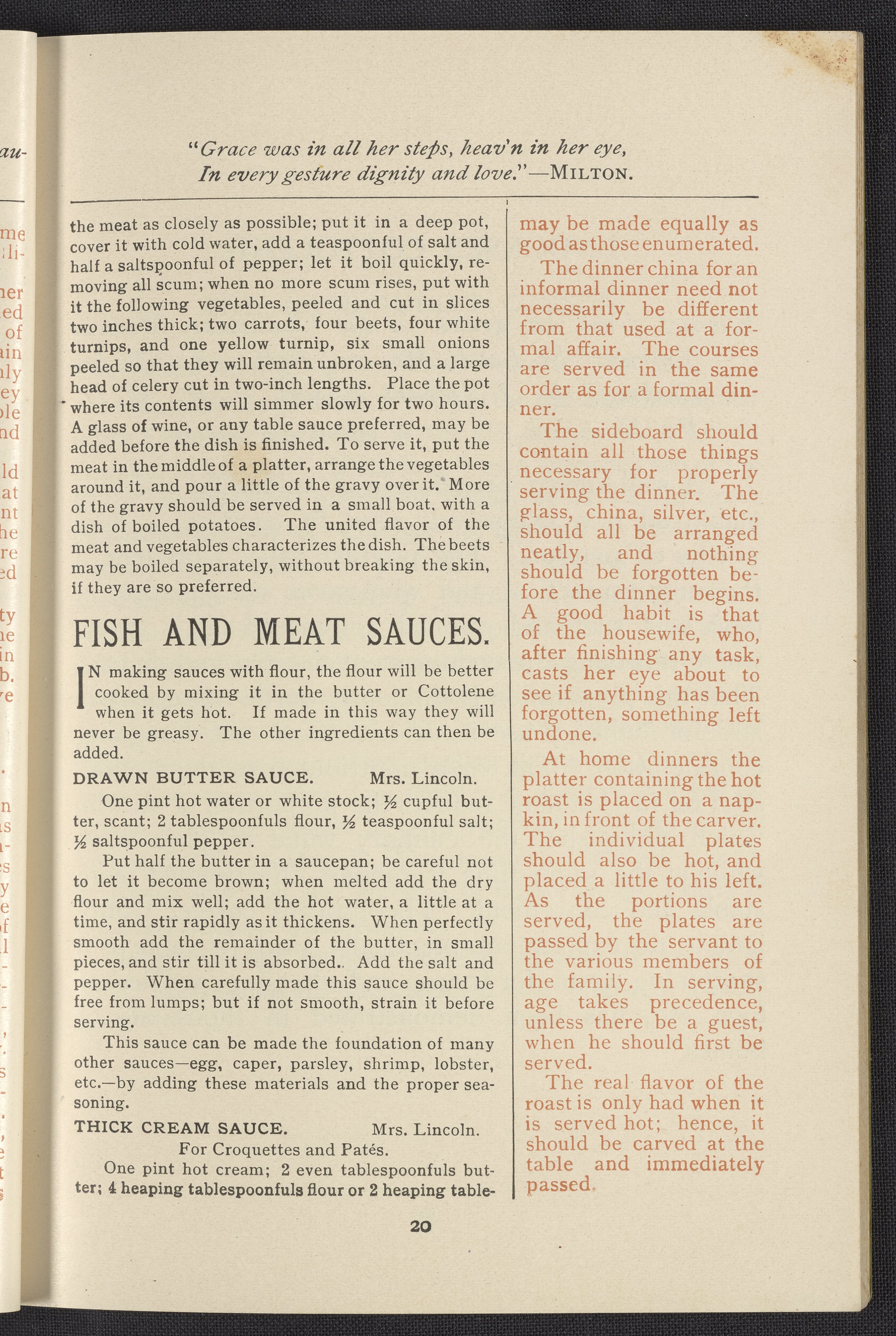 Small JPG1200 x 1648px — 361 KBLarge JPG2880 x 3956px — 2.1 MBFull-sized JPG3266 x 4486px — 2.7 MBOriginal fileTIFF — 3266 x 4486px — 42.0 MBA collection of recipes using Cottolene, a brand of shortening made from beef tallow and cottonseed oil, that was manufactured by the N. K. Fairbank Company. Cottolene was produced from 1868 until the mid-20th century. Many cookbooks, such as this one, were written to promote its use. Advertisements for other products are interspersed throughout.