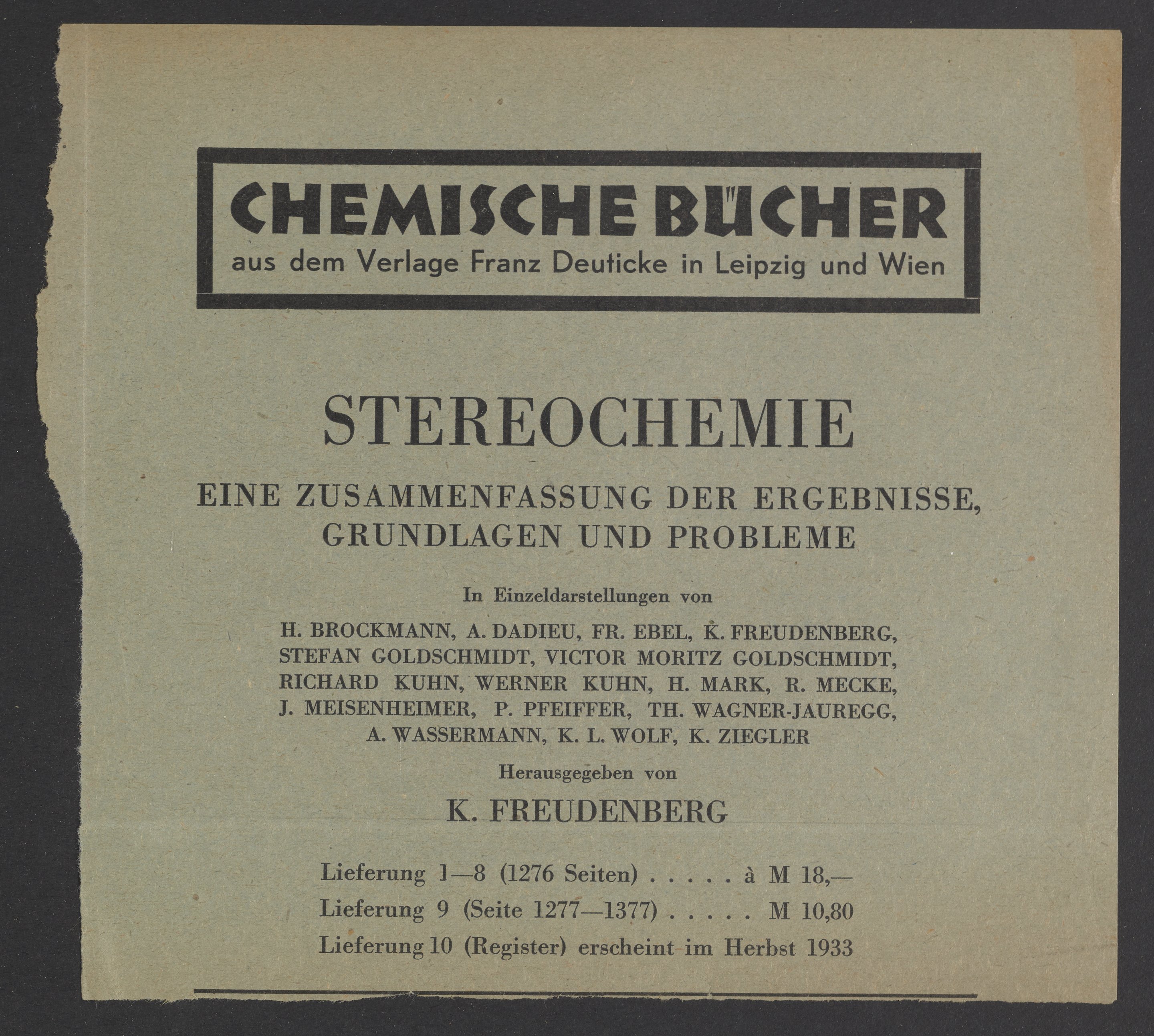Verlag Franz Deuticke (Vienna, Austria). “Advertisements for Publications from Verlag Franz Deutick,” circa 1937. Papers of Georg and Max Bredig, Box 3, Folder 6. Science History Institute. Philadelphia. https://digital.sciencehistory.org/works/k7m1rj2.