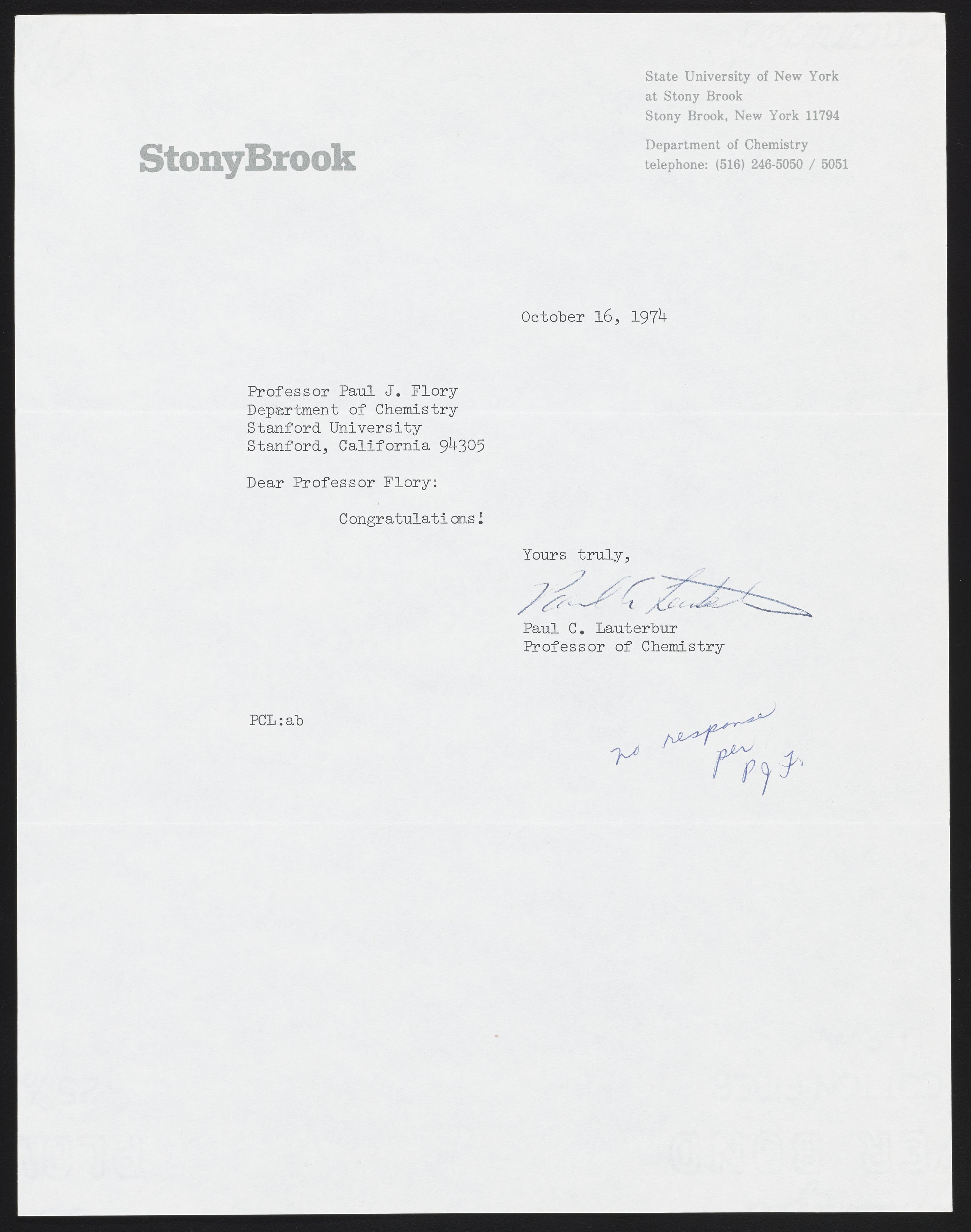 Letter from Paul Lauterbur to Paul Flory