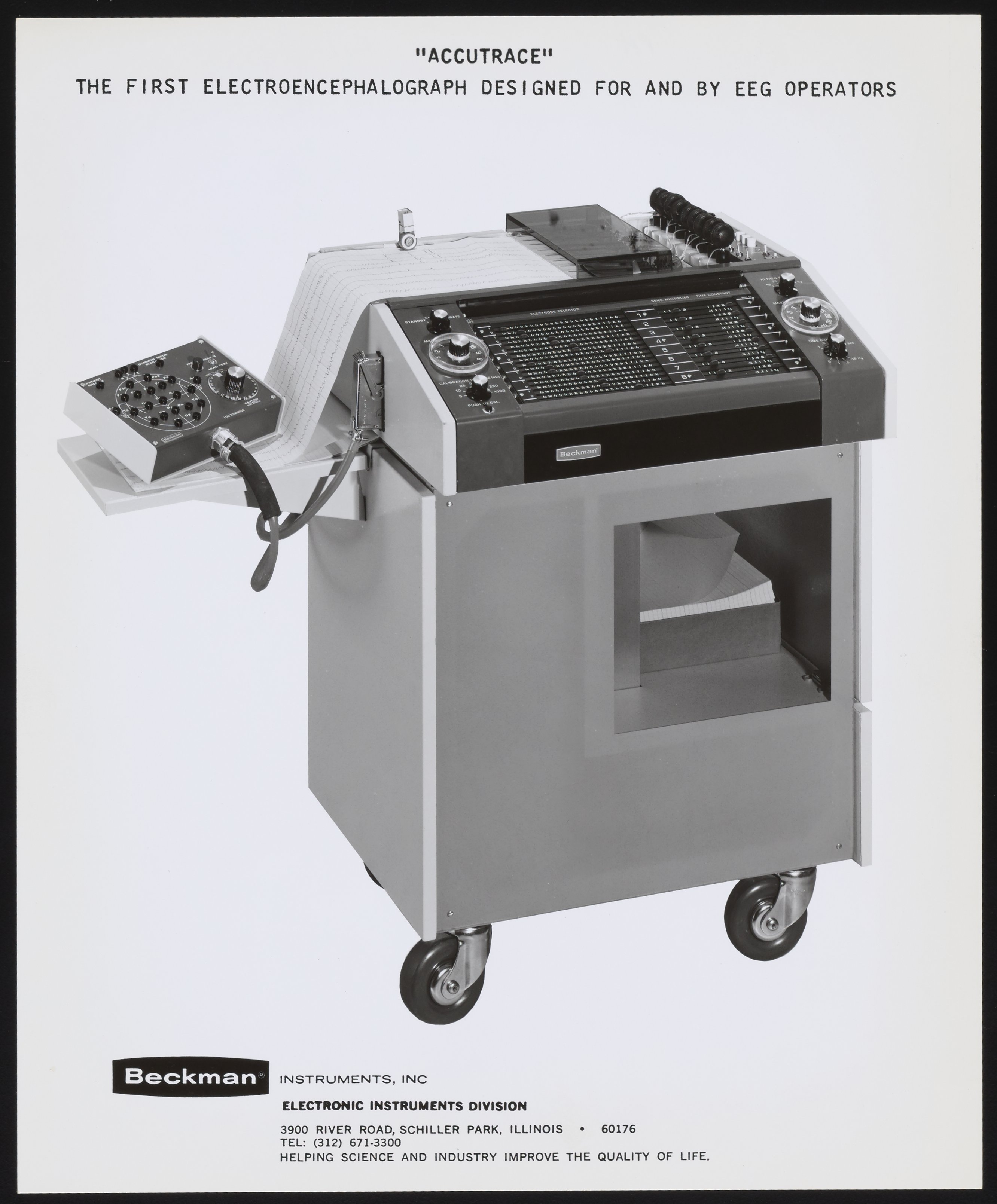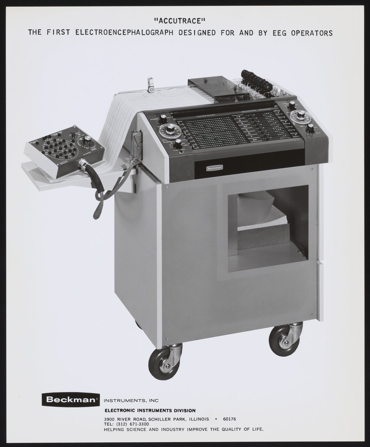 “Beckman Accutrace Electroencephalograph,” circa 1973. Beckman Historical Collection, Box 55, Folder 158. Science History Institute. Philadelphia. https://digital.sciencehistory.org/works/kd17cs89j.
