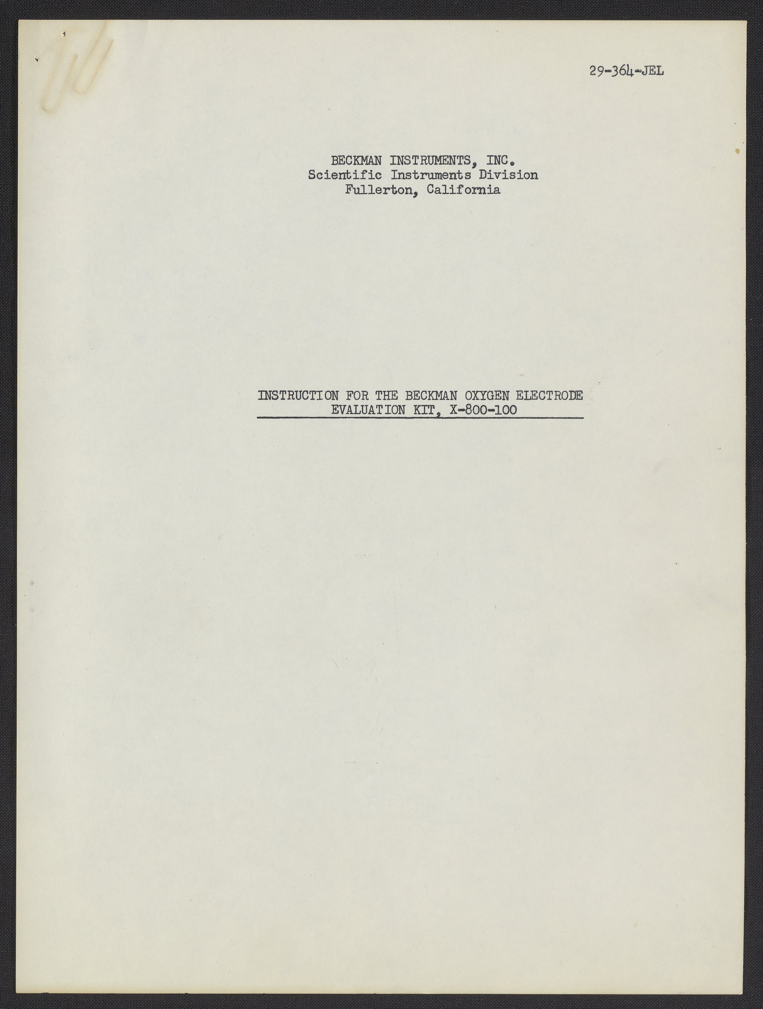 Beckman Instruments, Inc. “Instructions for the Beckman Oxygen Electrode Evaluation Kit, X-300-100 (Final),” n.d. Beckman Historical Collection, Box 19, Folder 4. Science History Institute. Philadelphia. https://digital.sciencehistory.org/works/kd17ct39j.