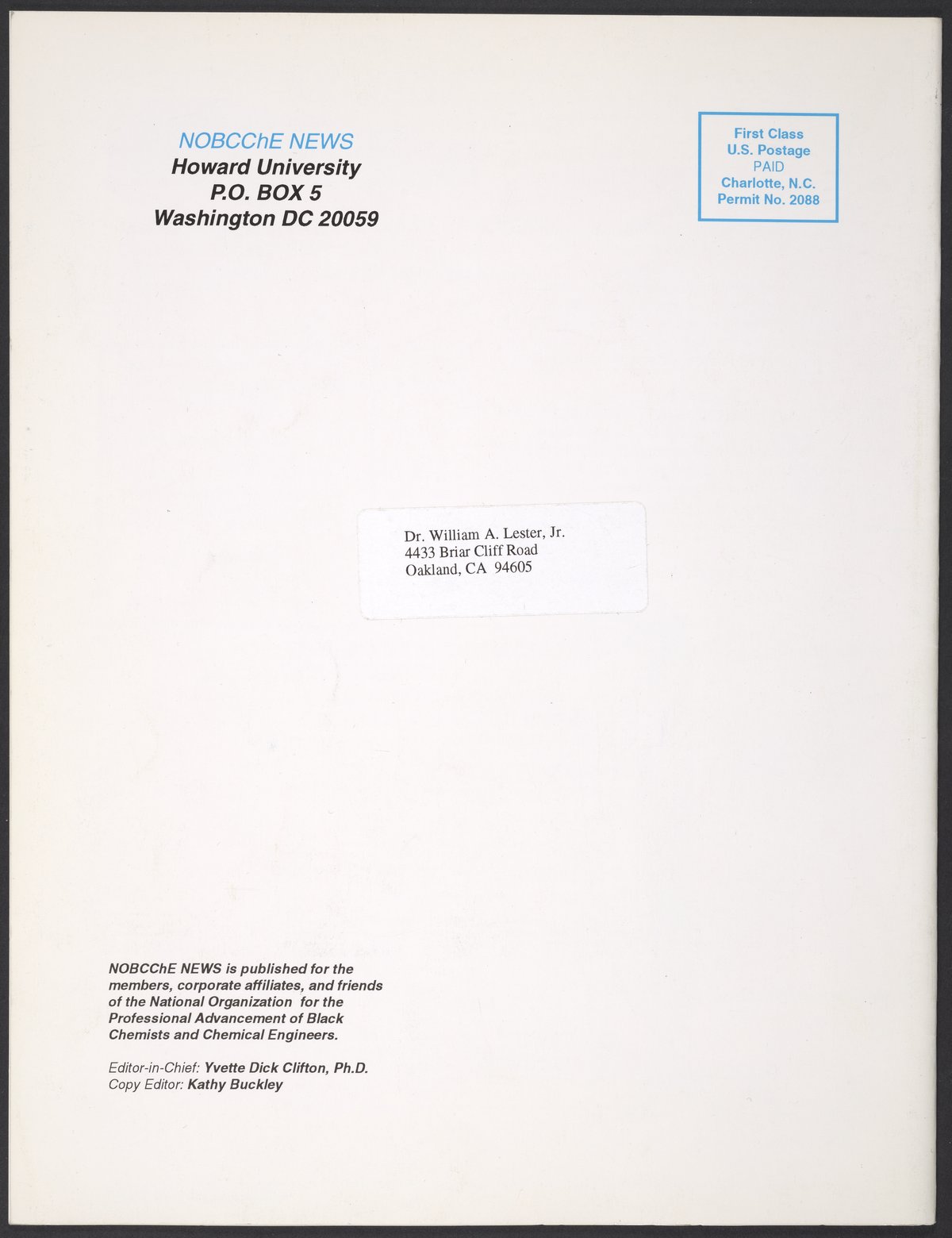 “NOBCChE News, Volume 19, Number 1.” Washington (D.C.): National Organization for Black Chemists and Chemical Engineers, 1998. William A. Lester, Jr. Papers, Box 46, Folder 32. Science History Institute. Philadelphia. https://digital.sciencehistory.org/works/kflwupn.