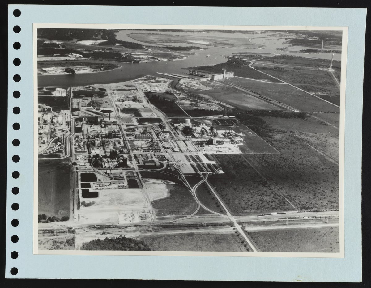 Rohm and Haas Company. “Aerial View of Rohm and Haas Company Facility near Houston, Texas.” Rohm and Haas Company Album of Domestic Locations, 1965, 1965. Rohm & Haas Company Archives, Box 23 (Photographs), Folder 7. Science History Institute. Philadelphia. https://digital.sciencehistory.org/works/kh04dq491.
