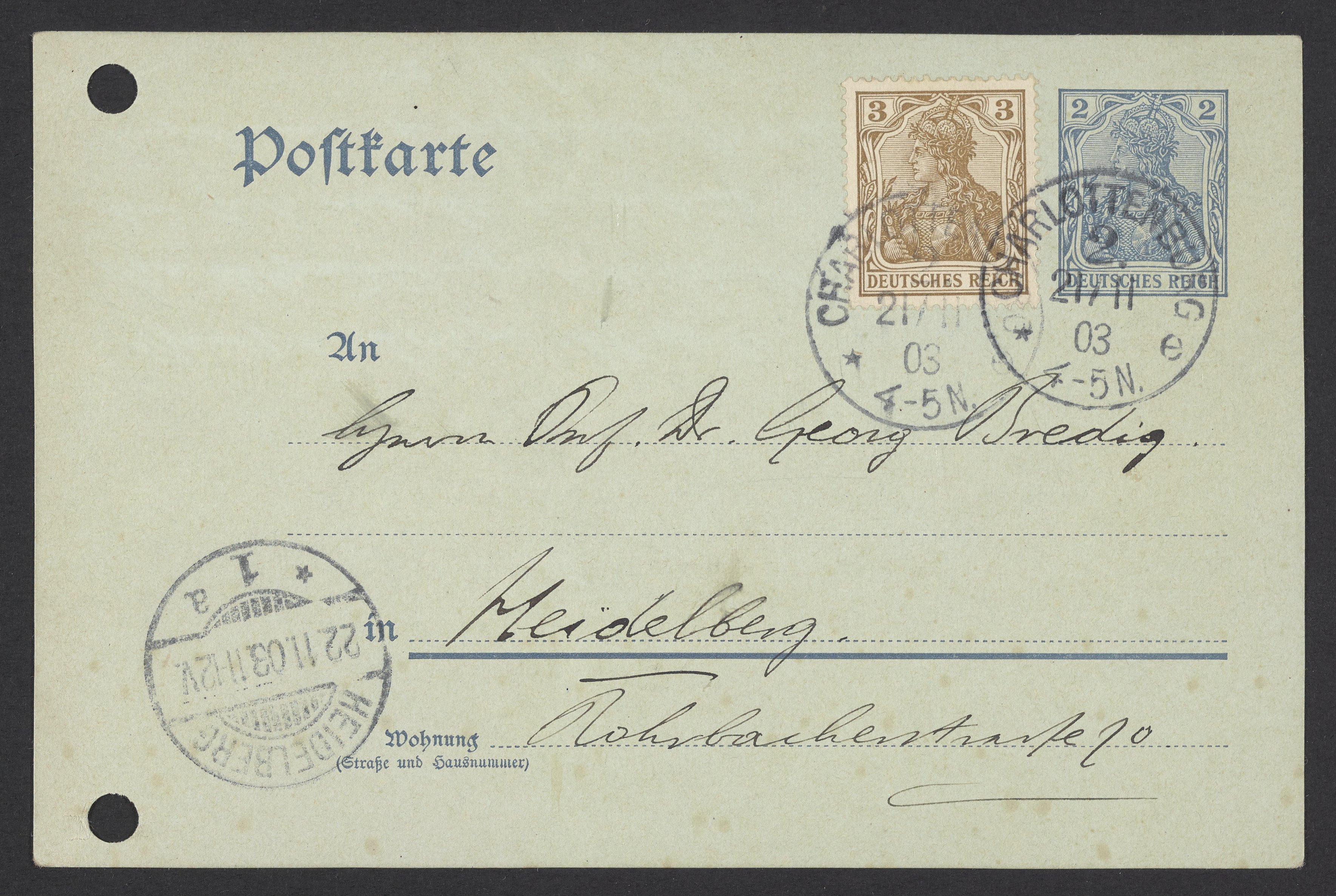 Postcard from Jacobus H. van 't Hoff to Georg Bredig, November 1903