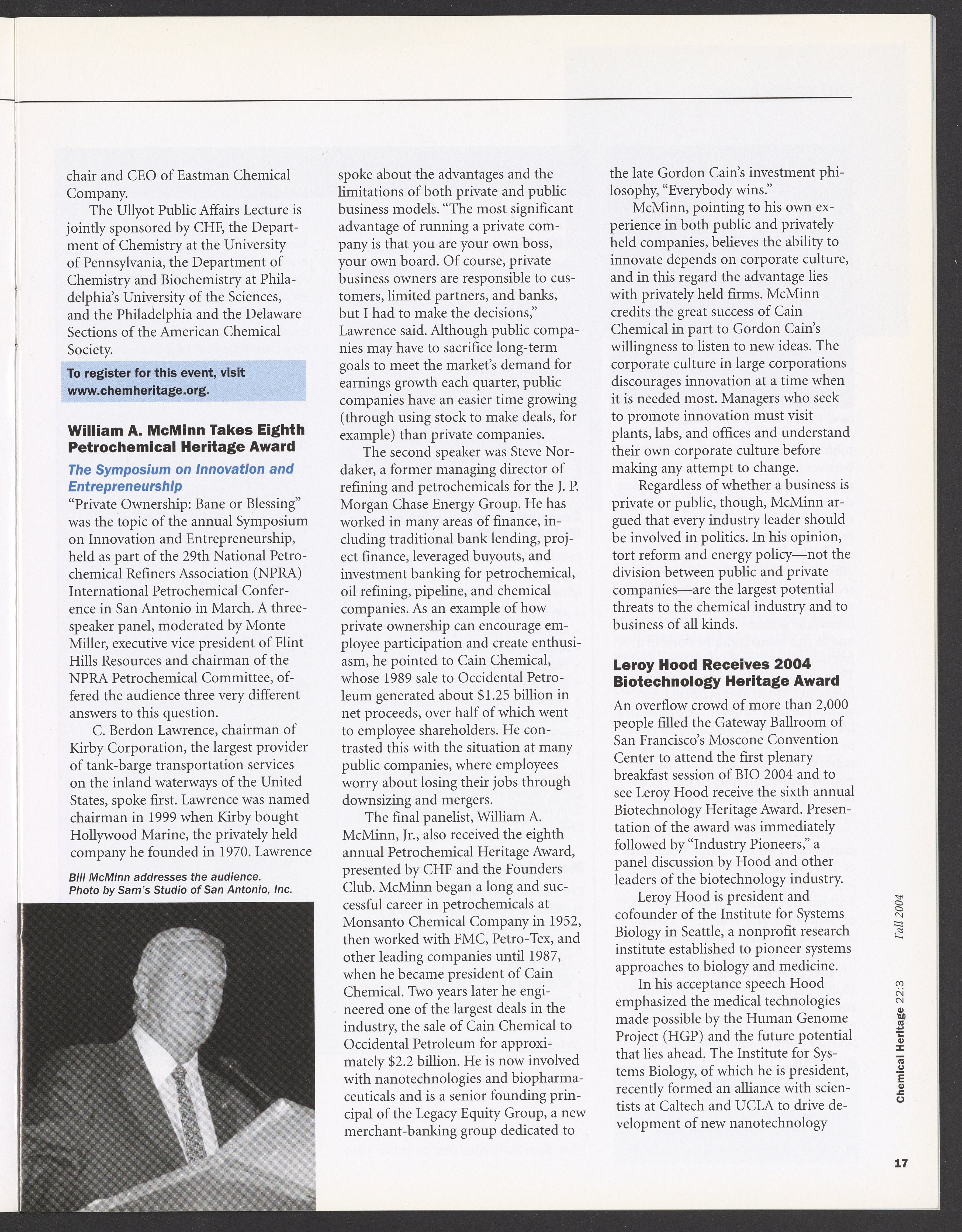 “Chemical Heritage, Volume 22 Number 3.” Philadelphia, Pennsylvania: Chemical Heritage Foundation, 2004. 099C001. Science History Institute. Philadelphia. https://digital.sciencehistory.org/works/kk6zz3v.