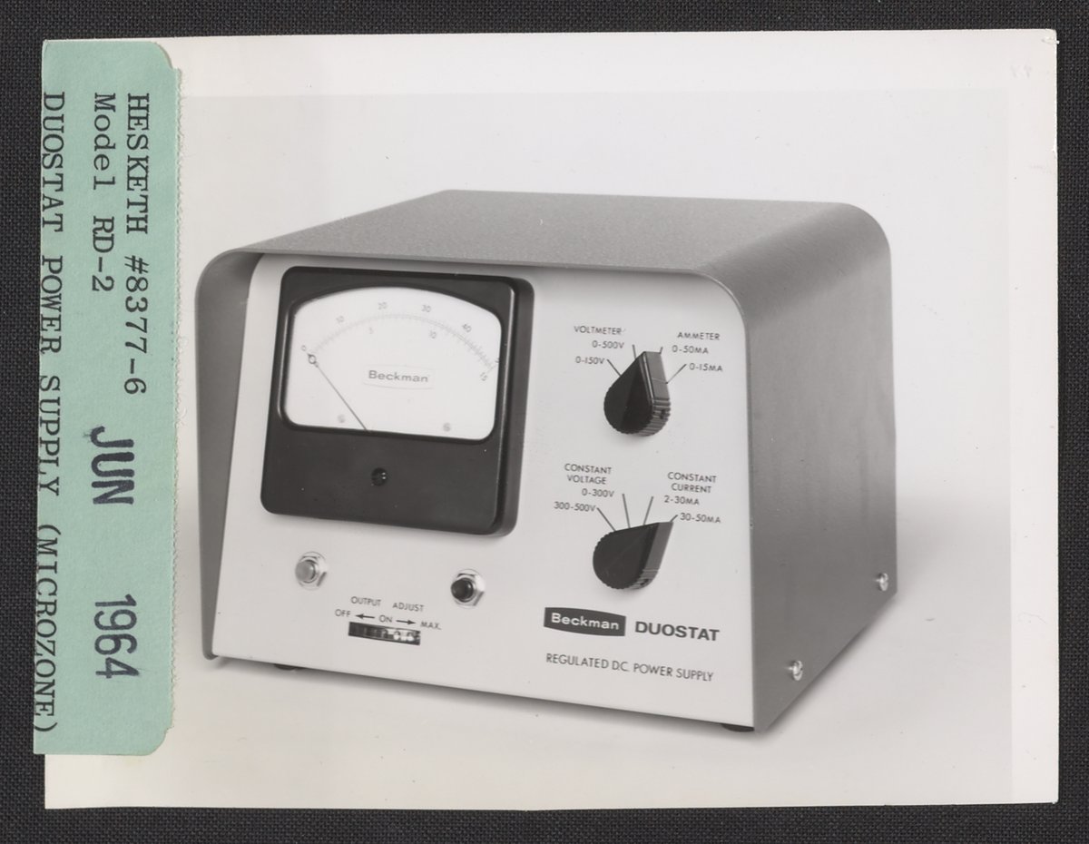 Hesketh, Dean D. “Beckman Duostat Regulated Power Supply,” June 1964. Beckman Historical Collection, Box 86. Science History Institute. Philadelphia. https://digital.sciencehistory.org/works/kk91fm00s.