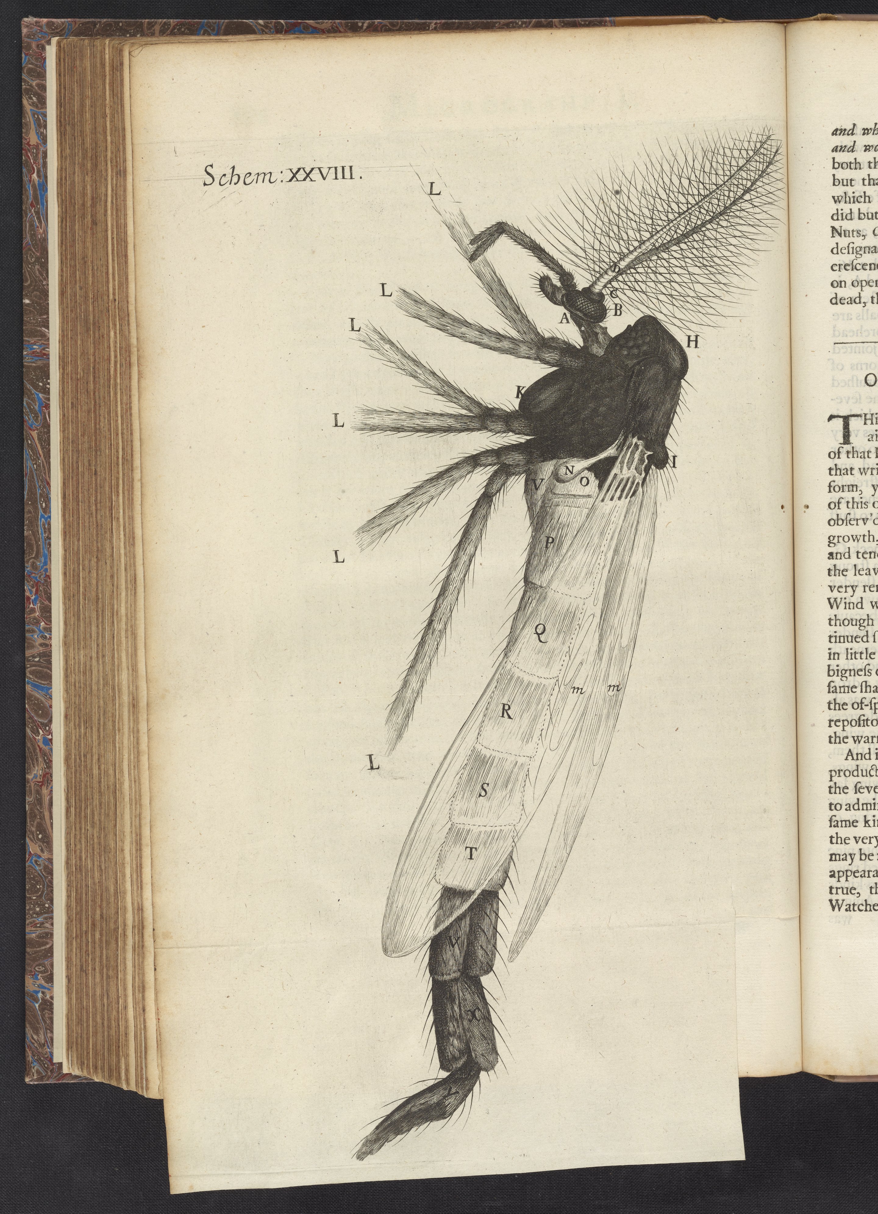 Hooke, Robert. “Microscopic View of a Tuft'd [Tufted] or Brush-Horned Gnat.” In Micrographia : or, Some Physiological Descriptions of Minute Bodies Made by Magnifying Glasses. With Observations and Inquiries Thereupon. London, England: J. Martyn, 1665. https://digital.sciencehistory.org/works/kk91fm79z.