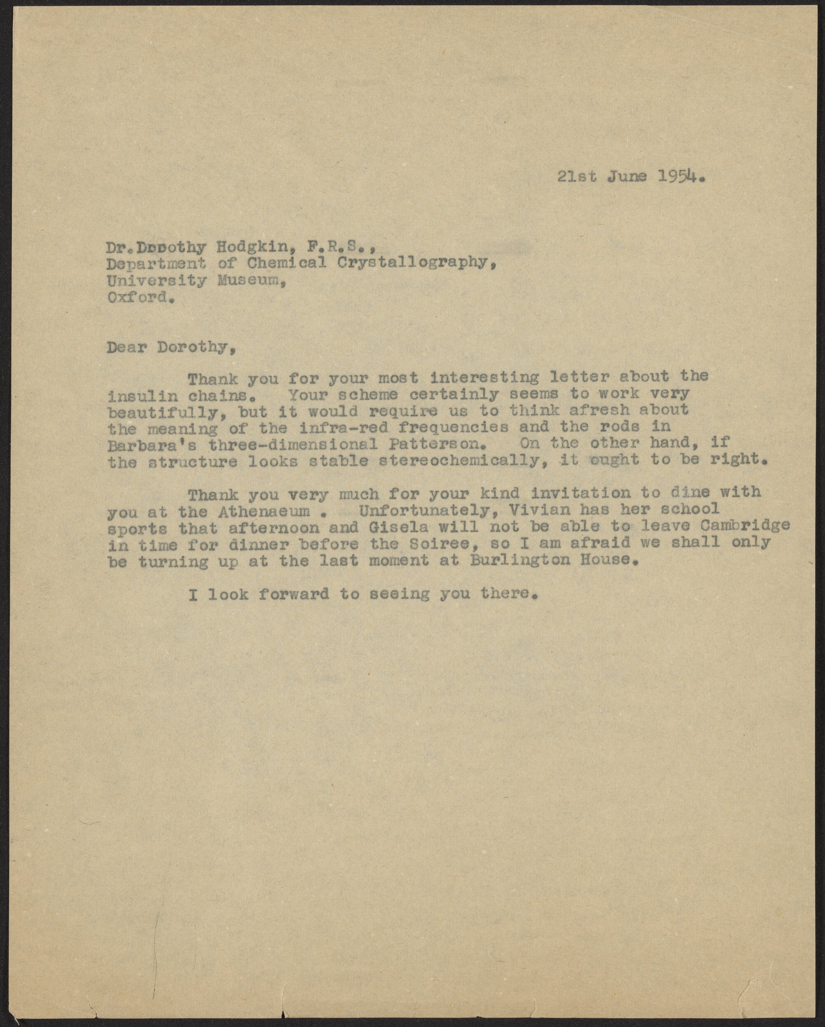 Letter from Max Perutz to Dorothy Hodgkin, June 21, 1954