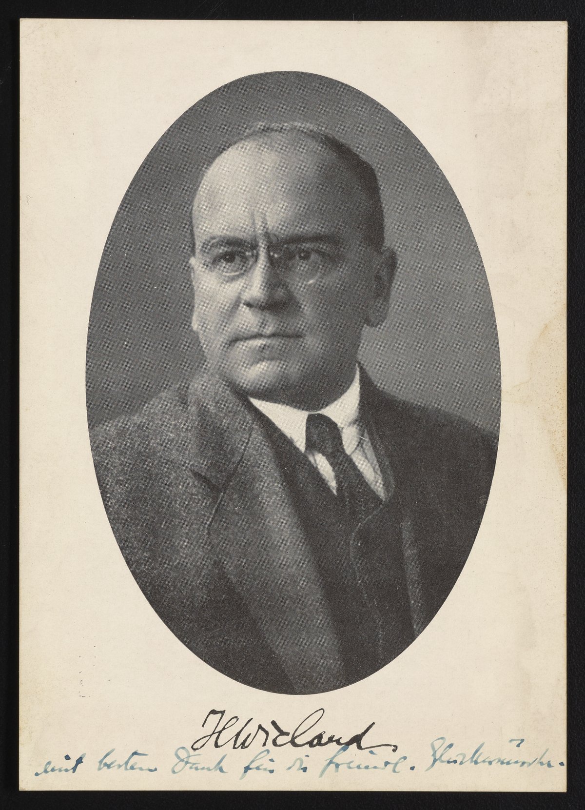 Black and white portrait of Heinrich Otto Wieland (1877-1957). Wieland was a German organic chemist and biochemist. In 1927 he was awarded the Nobel Prize in Chemistry for his research of of bile acids.
