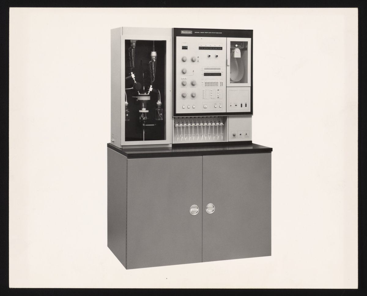 Illig, Russell. “Beckman System 990 Synthesizer and Model 990 Peptide Synthesizer,” n.d. Beckman Historical Collection, Box 59, Folder 118. Science History Institute. Philadelphia. https://digital.sciencehistory.org/works/ks65hc719.