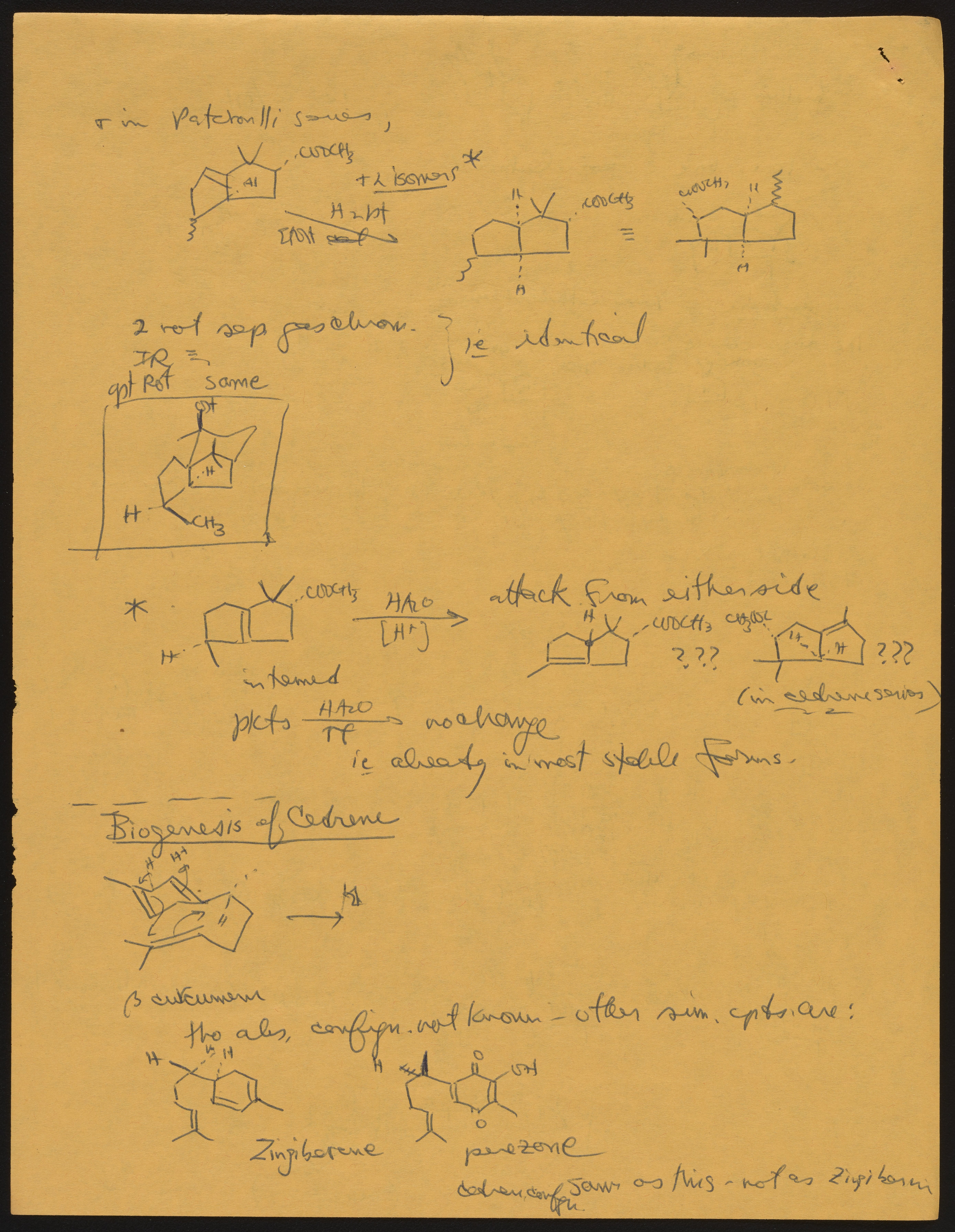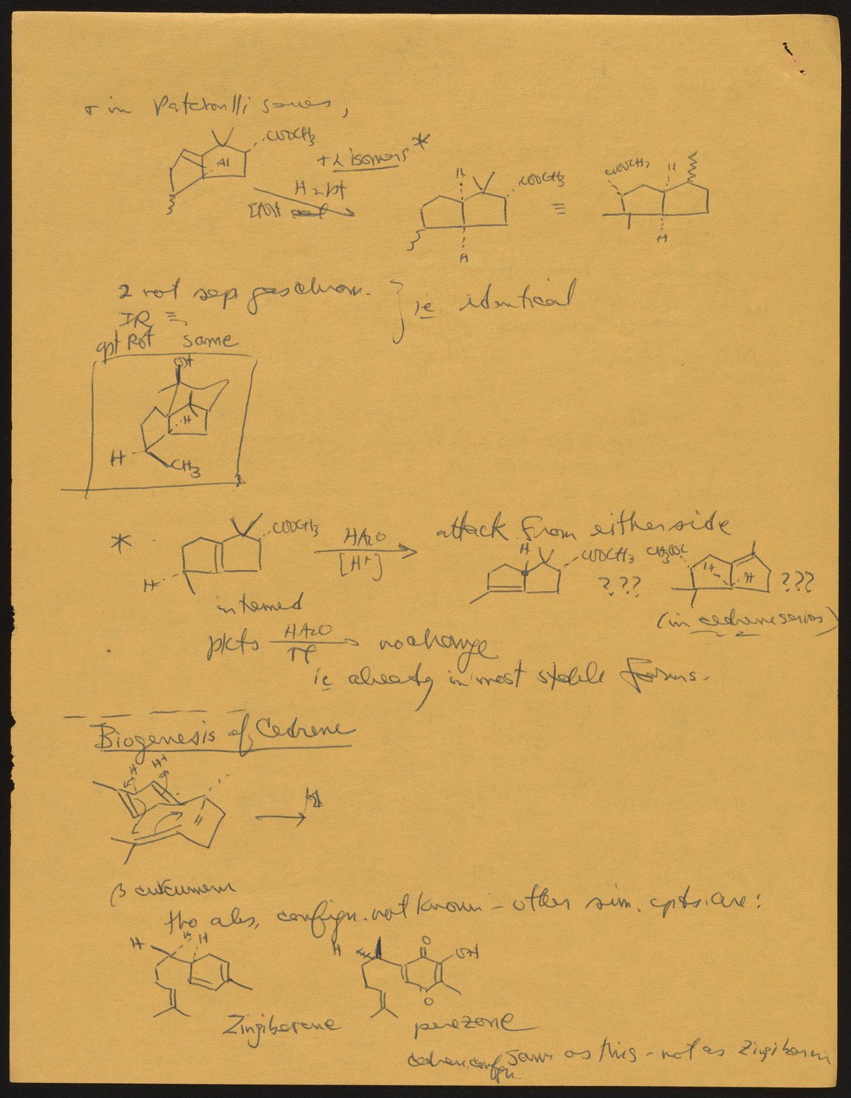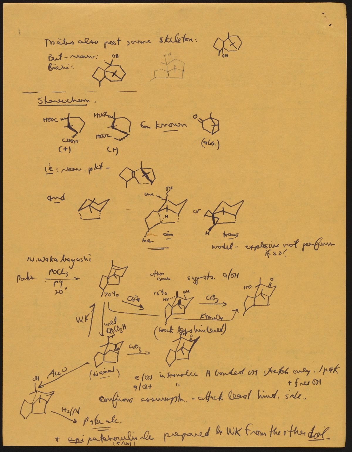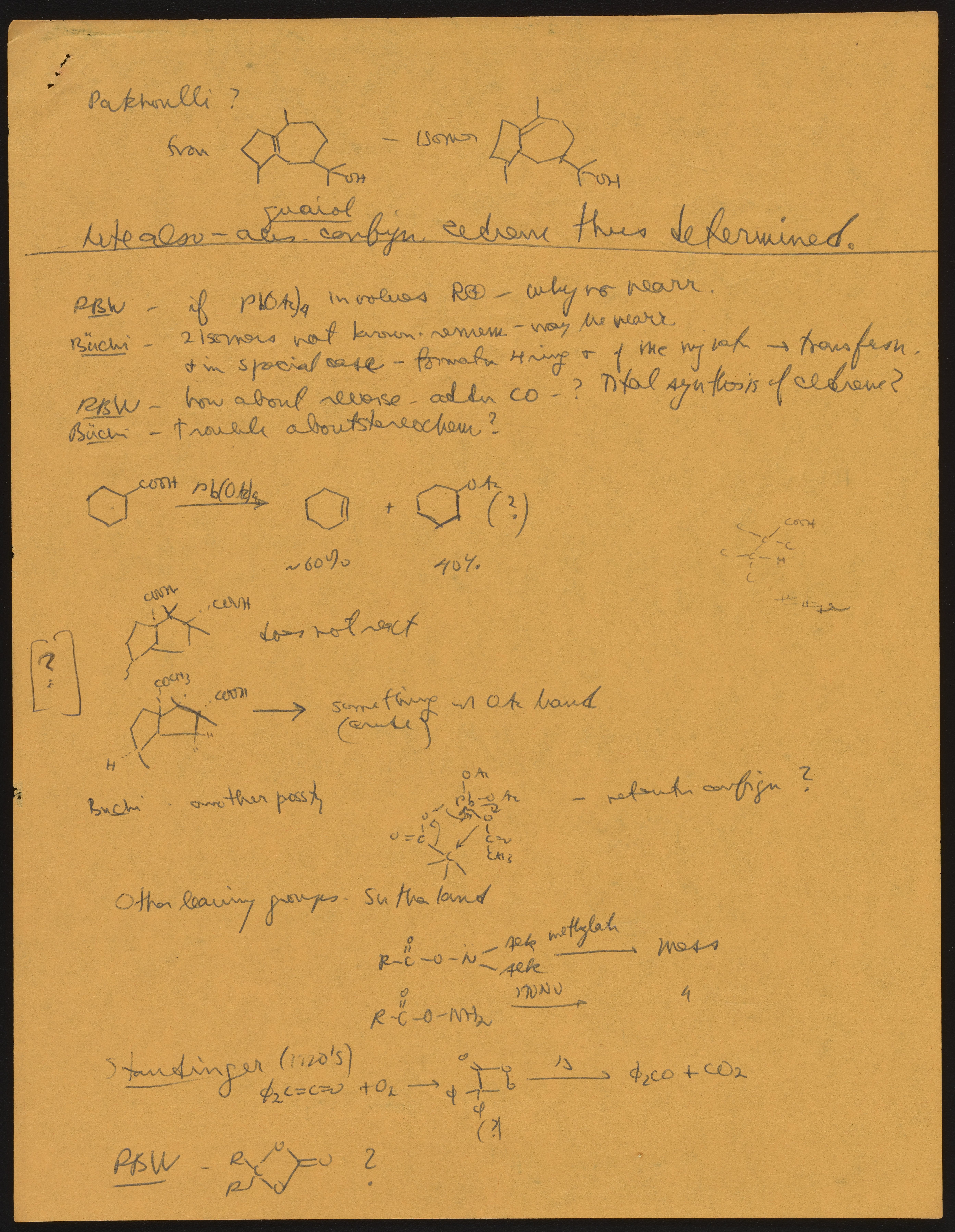 Kohler, Robert E. “R. B. (Robert Burns) Woodward Seminar Entitled "[Stereochemistry] of Patchouli Alcohol.’” Notes from R. B. (Robert Burns) Woodward's Seminars, circa 1959–1966. Folder 2. Science History Institute. Philadelphia. https://digital.sciencehistory.org/works/ks65hd31j.