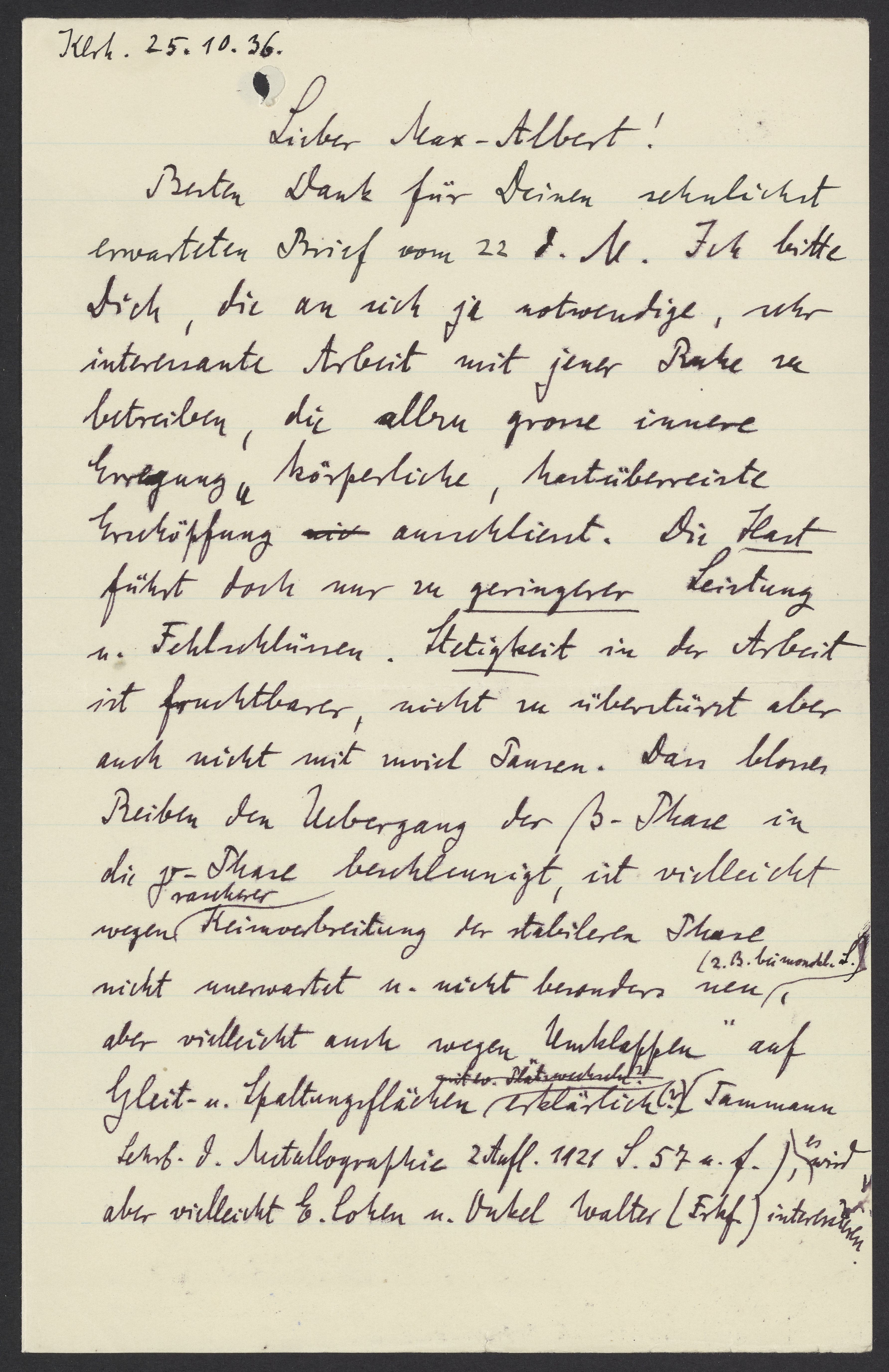 Letter from Georg Bredig to Max Bredig, October 25, 1936