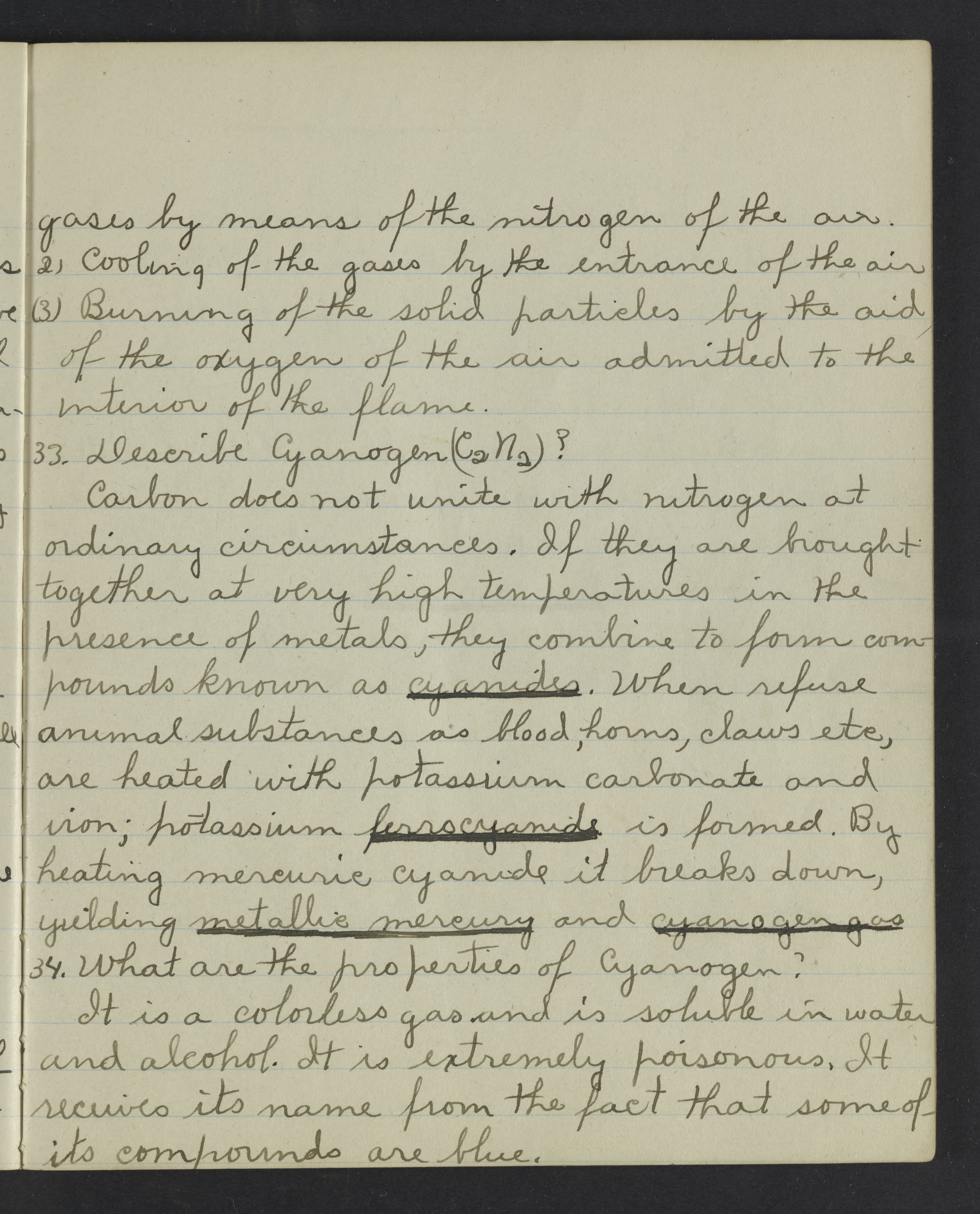 Brabenec, Rose Agnes. “Chemistry Notes Taken by Rose Agnes Brabenec,” 1907. Science History Institute. Philadelphia. https://digital.sciencehistory.org/works/l0kohab.